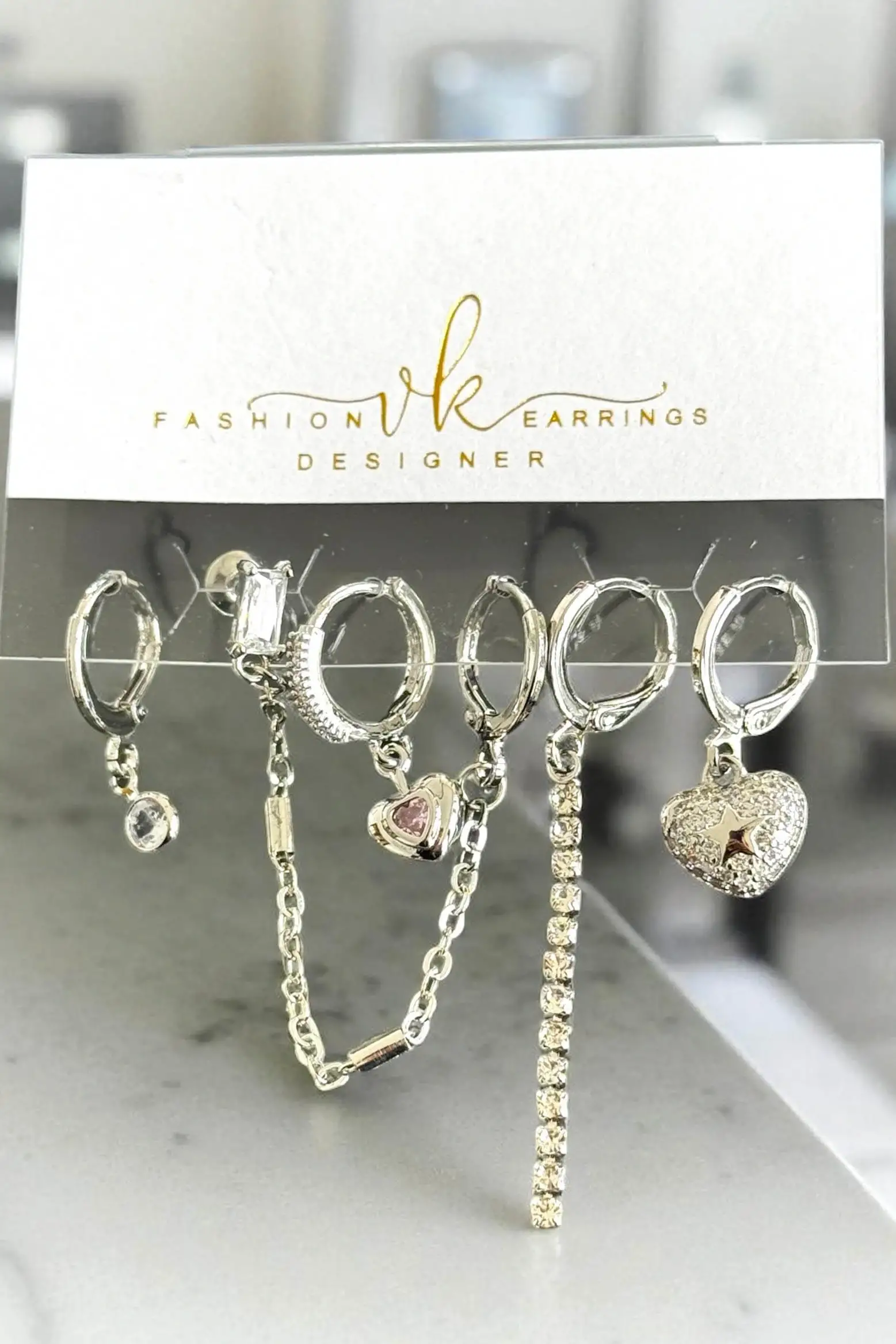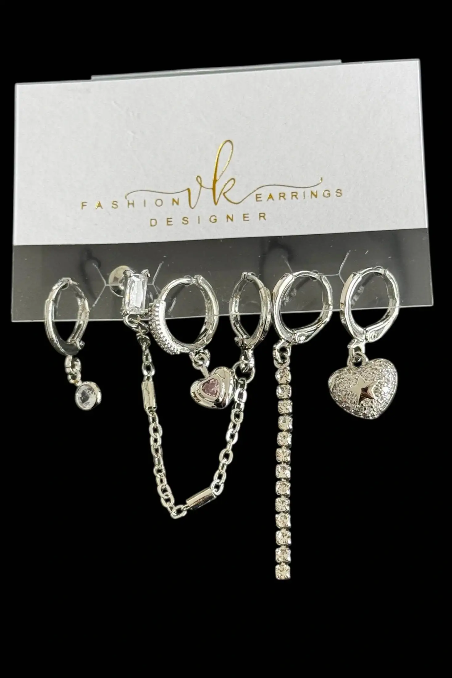 Gümüş Renk Taş Detaylı 6'lı Küpe Set