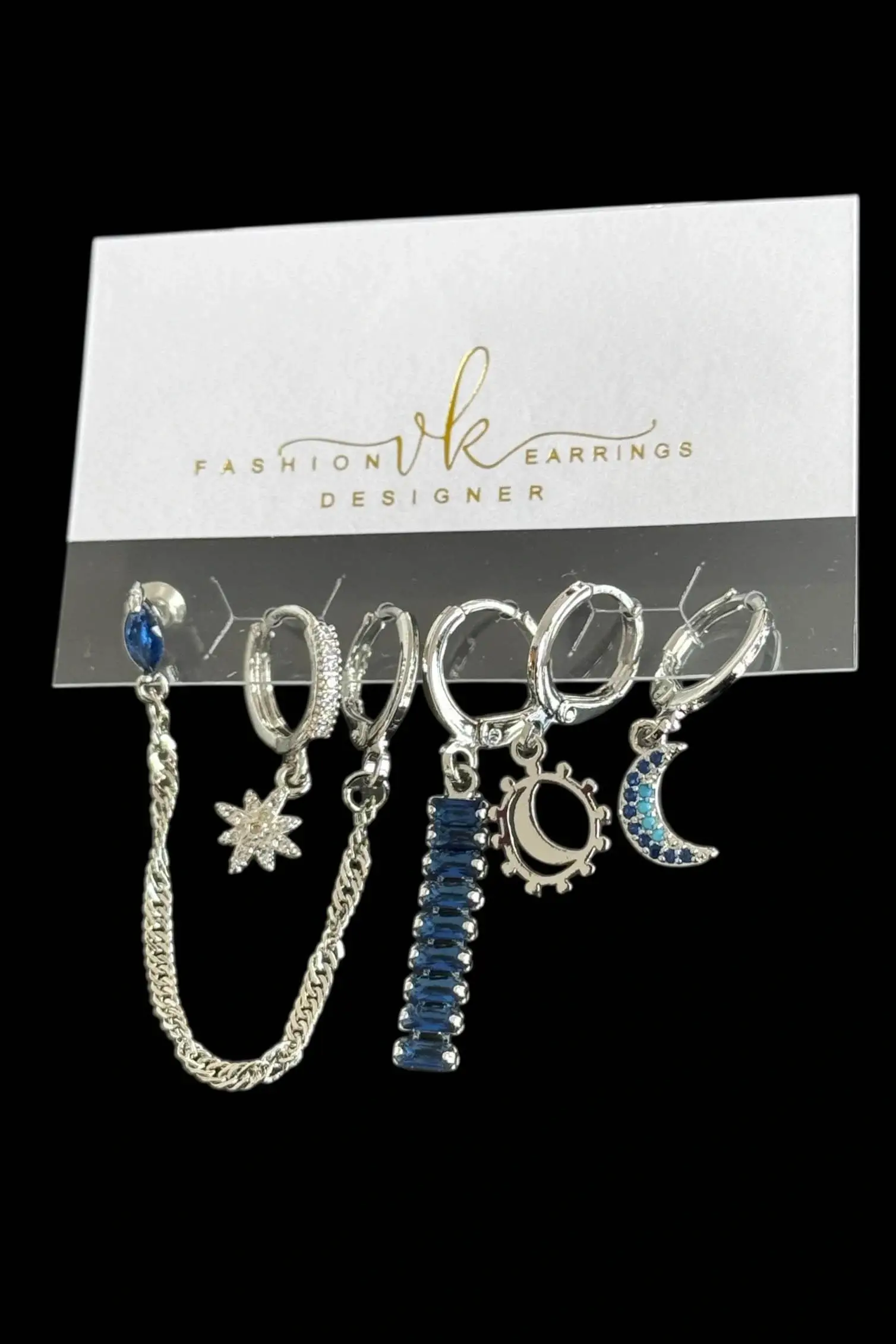 6'lı Gümüş Renk Yıldız Figürlü Küpe Set