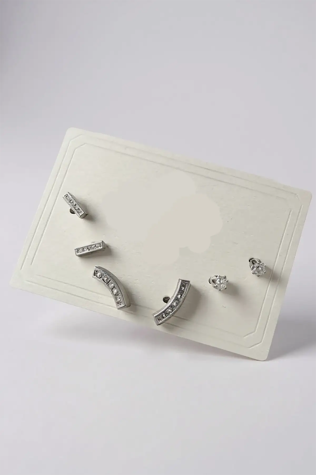 Gümüş Renk Taş Detaylı 6'lı Küpe Set