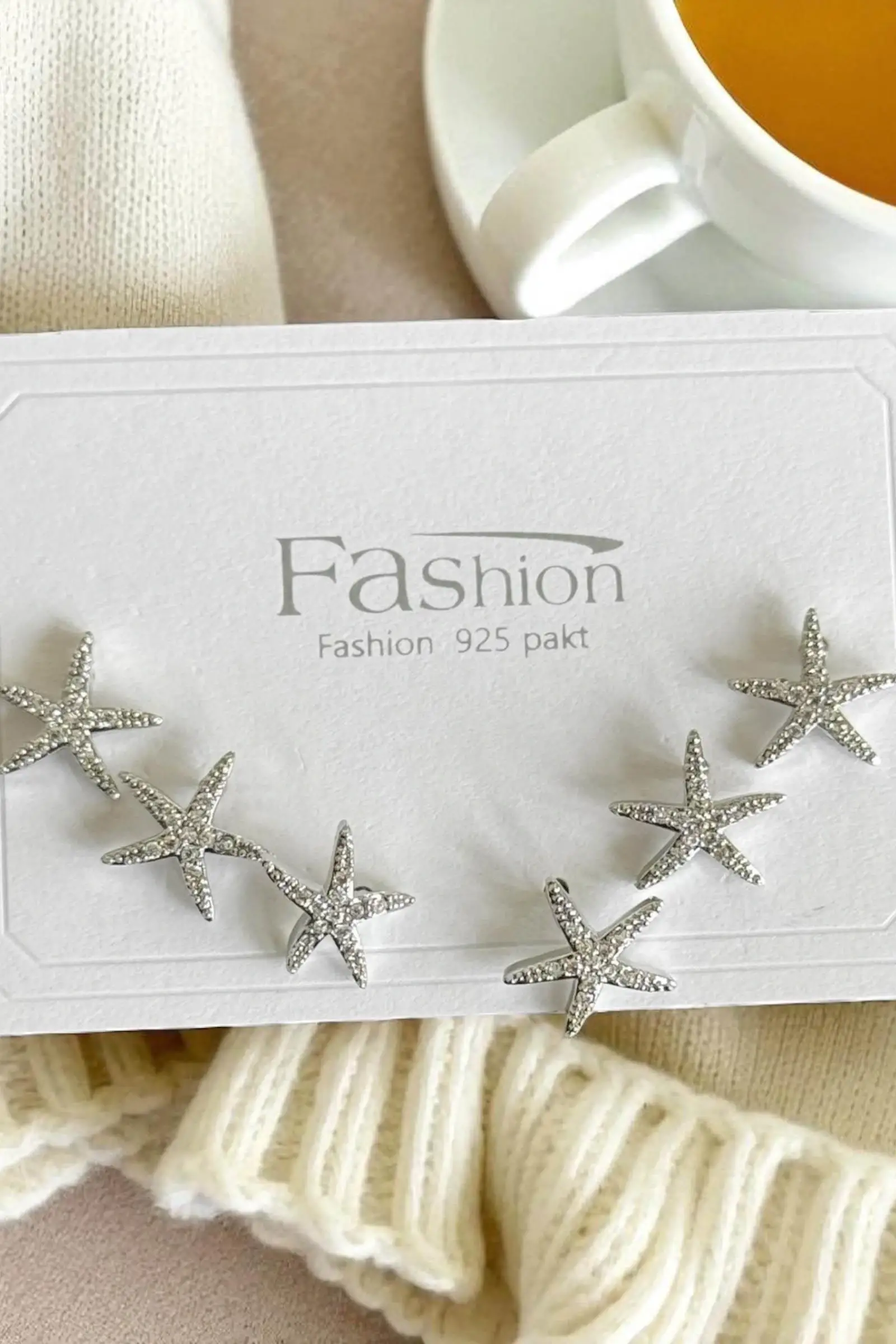 6'lı Gümüş Renk Yıldız Figürlü Küpe Set