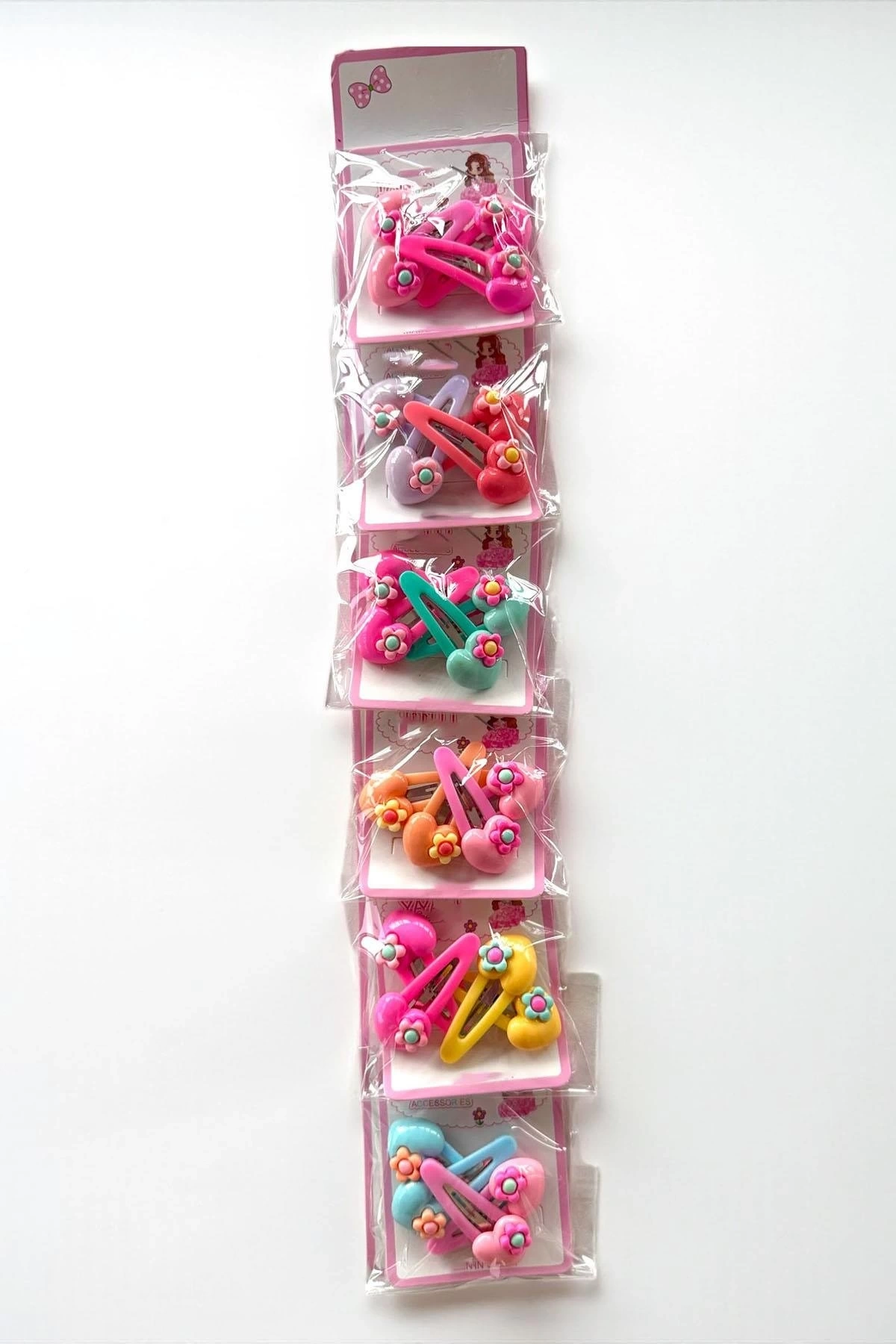 6'lı Karışık Renk Kalp Figürlü Yan Toka Set