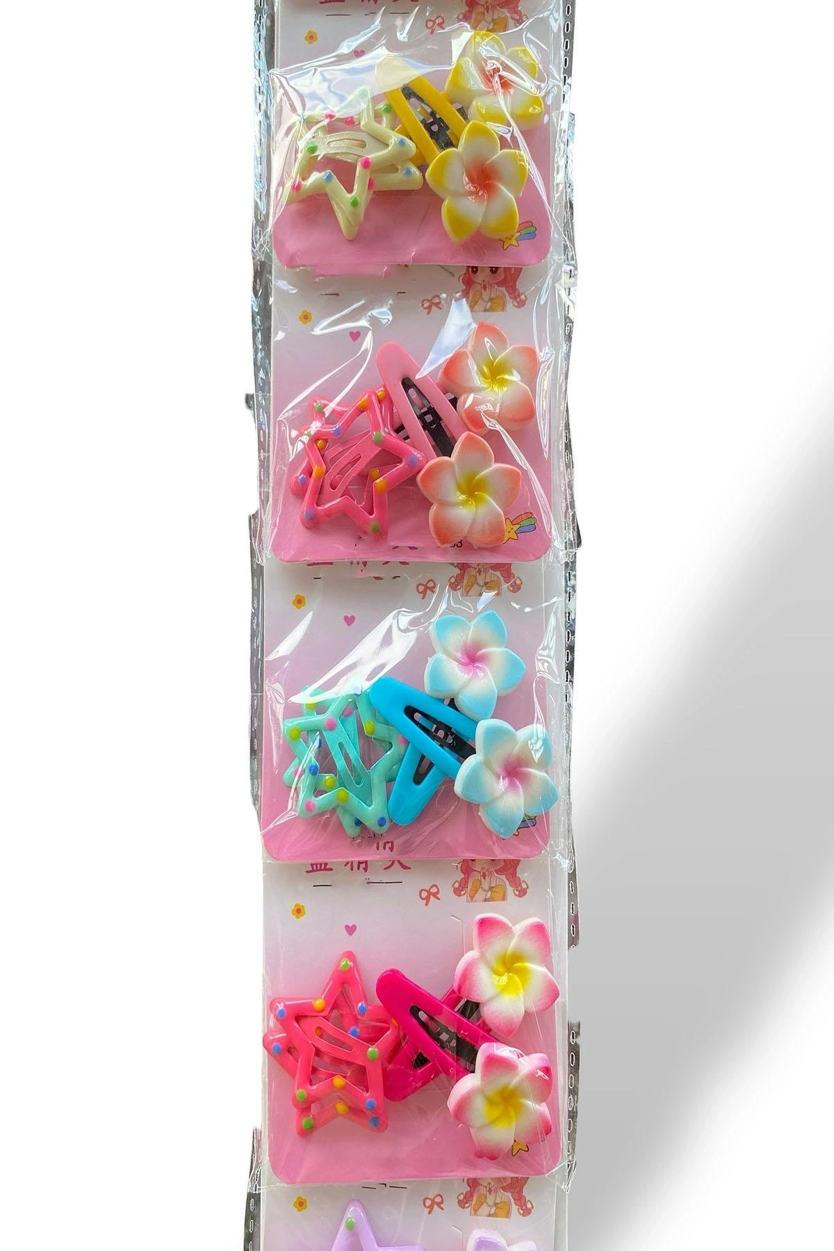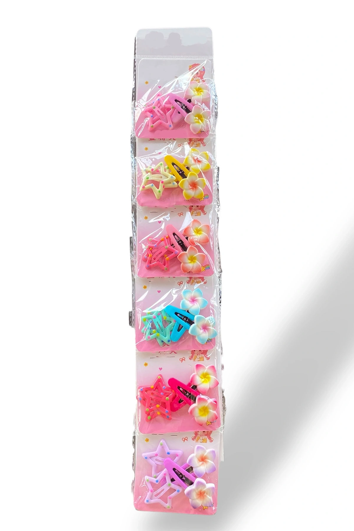 6'lı Karışık Renk Yıldız Ve Çiçek Figürlü Yan Toka Set