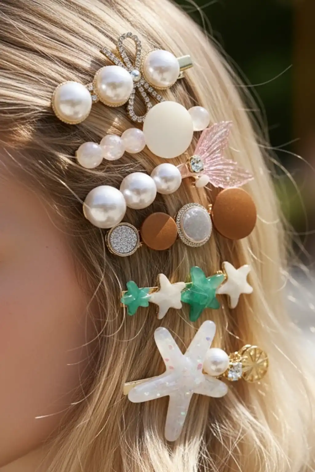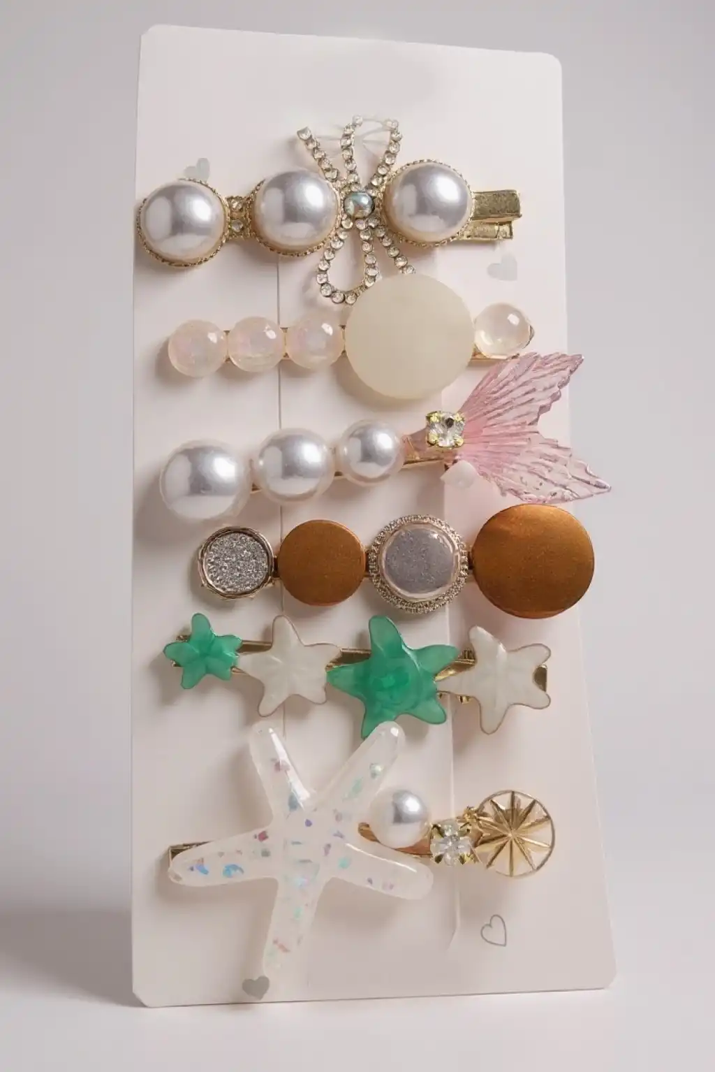 6'lı Karışık Renk Yıldız Ve Çiçek Figürlü Yan Toka Set