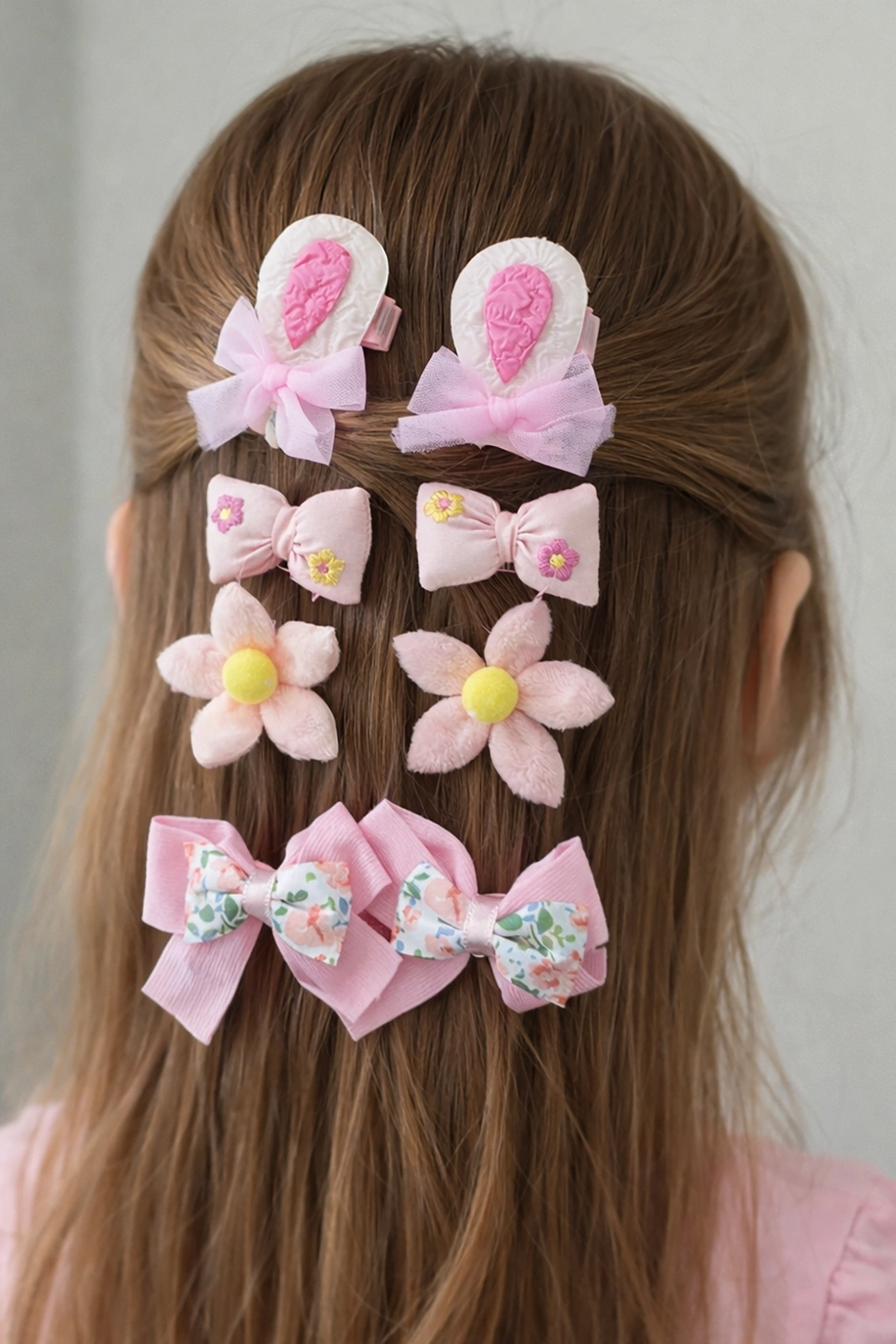 8'li Pembe Karışık Figürlü Yan Toka Set