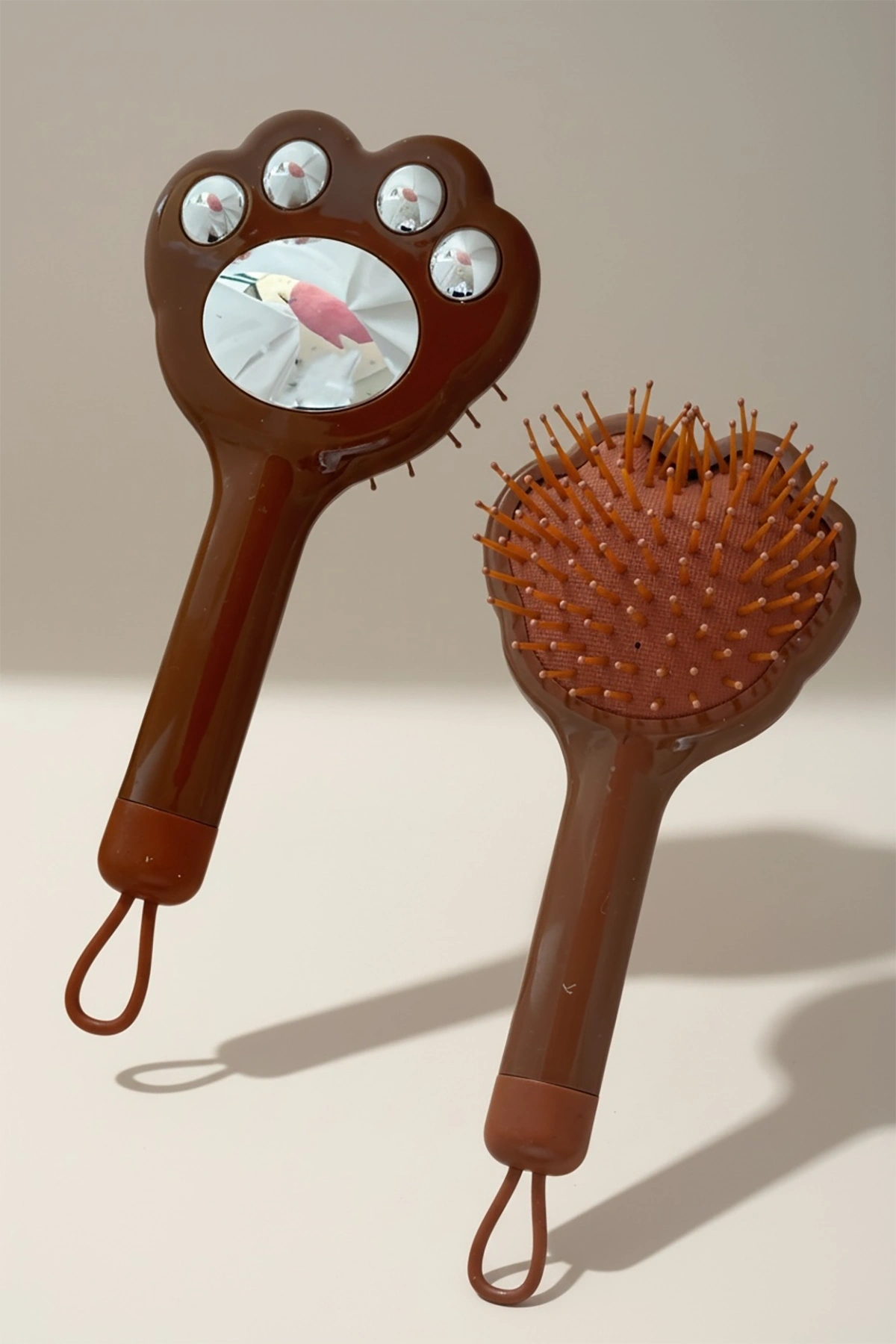 Acı Kahve Renk Pati Figürlü Saç Tarama Fırçası/ Tarak