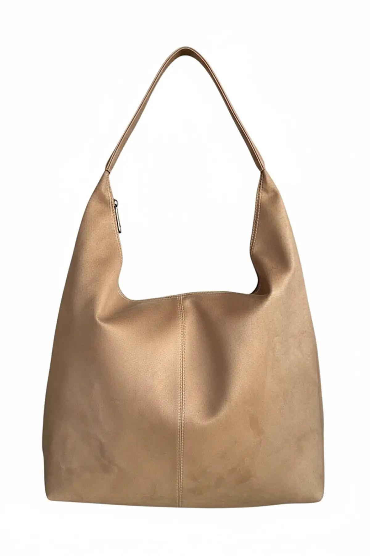 Açık Kahve Renk Büyük Boy Süet Kadın Çanta