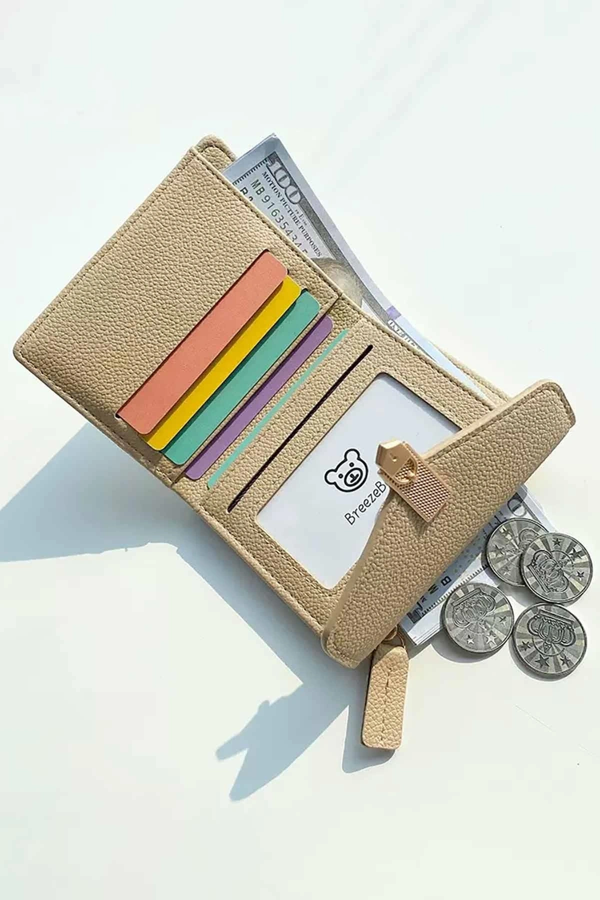 Açık Kahve Renk Deri Kadın Cüzdan/Kartlık