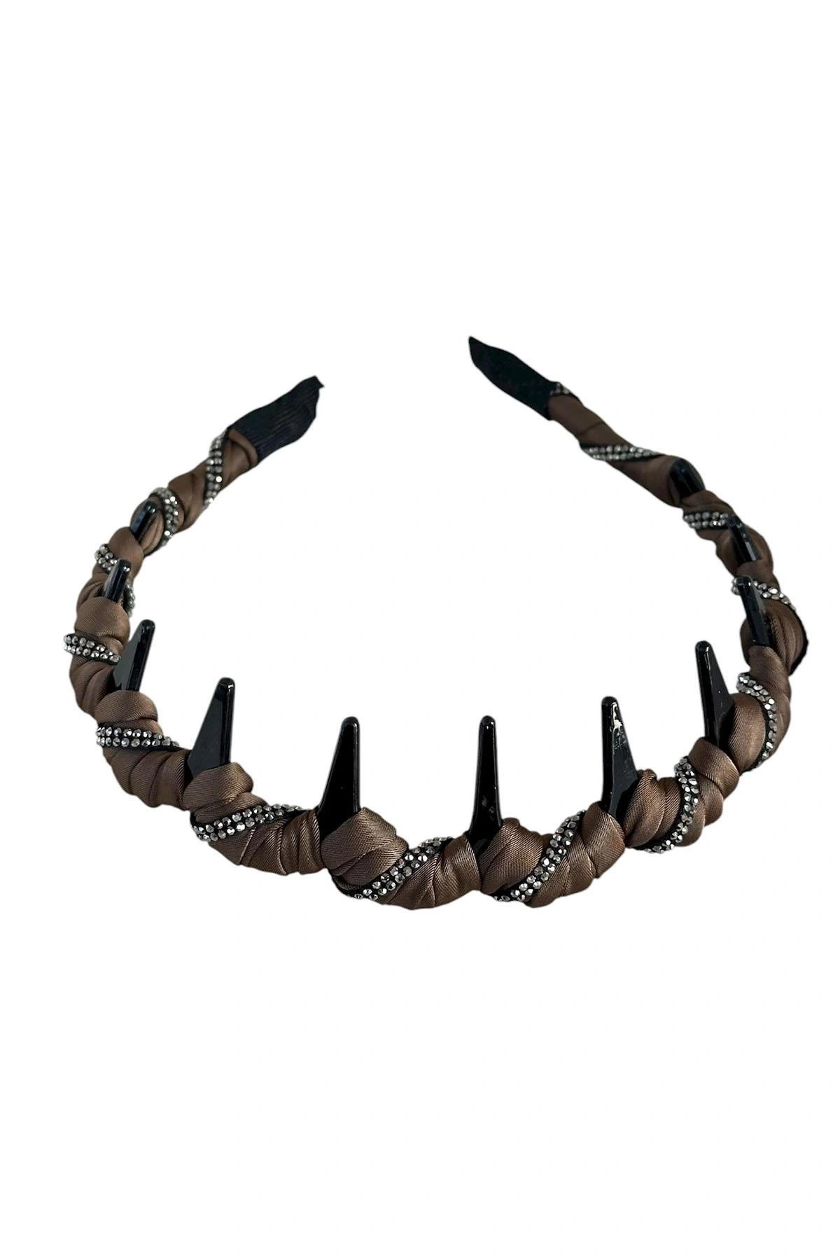 Açık Kahve Renk Taş Detaylı Taraklı Taç