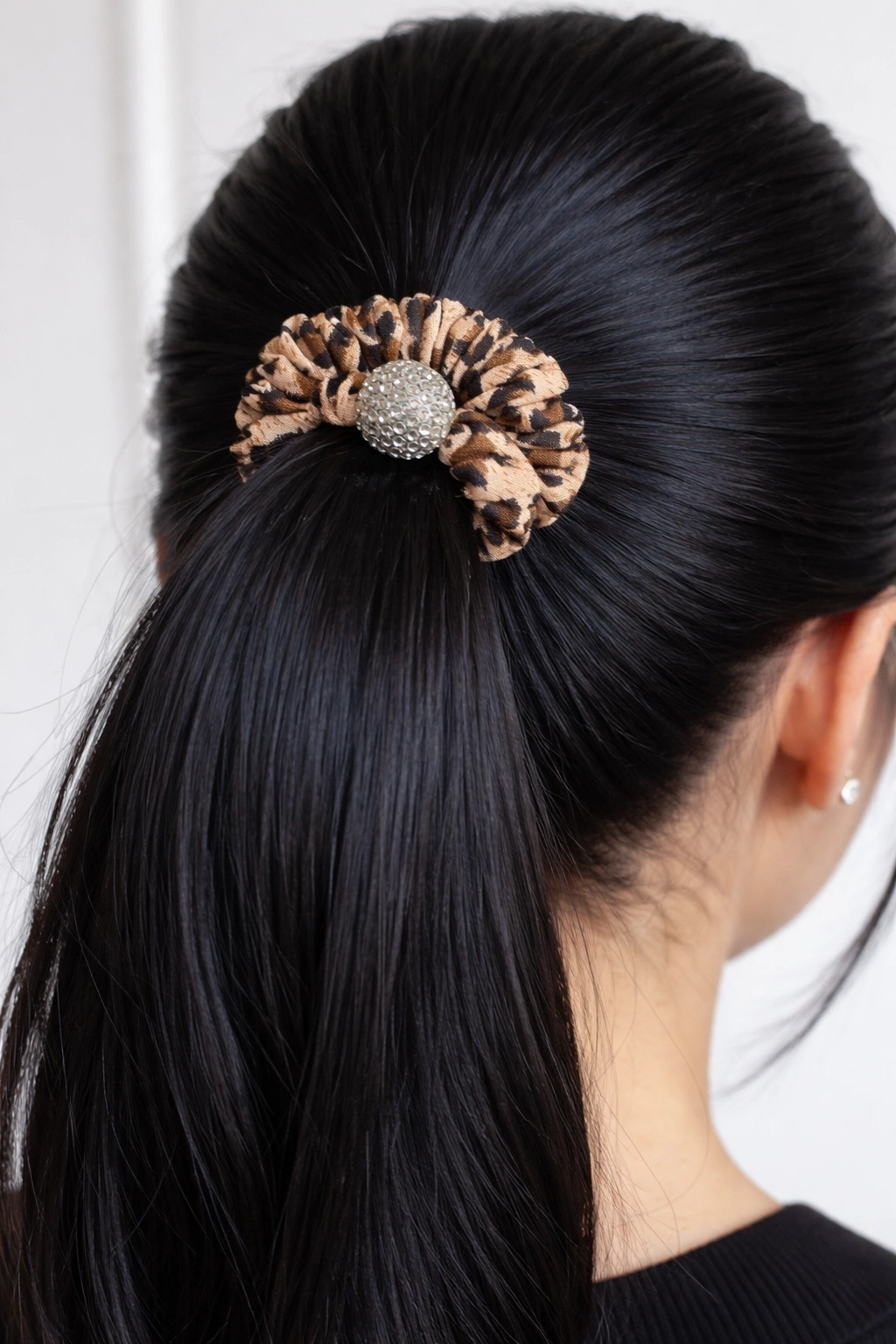 Açık Kahverengi Leopar Detaylı Taşlı Lastik Toka