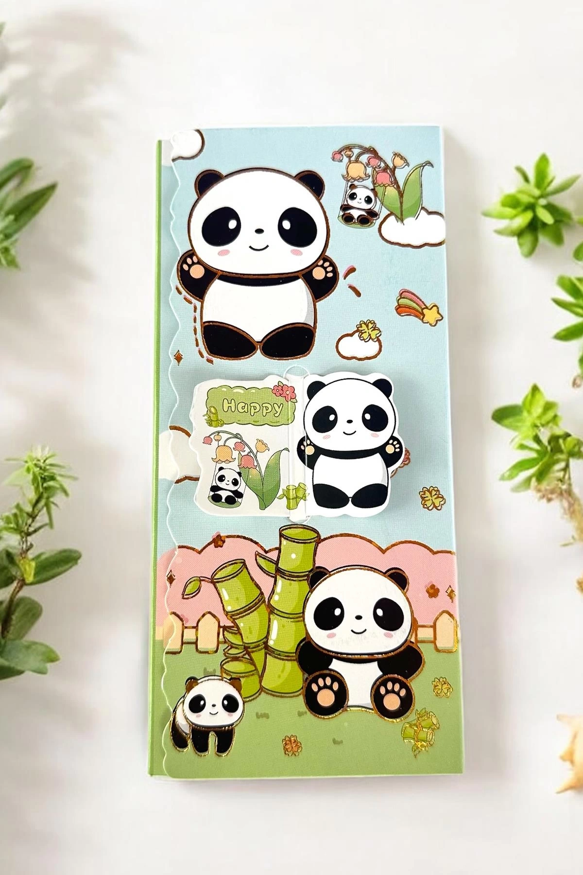Açık Mavi Renk Panda Figürlü Yapışkanlı Not Kağıdı