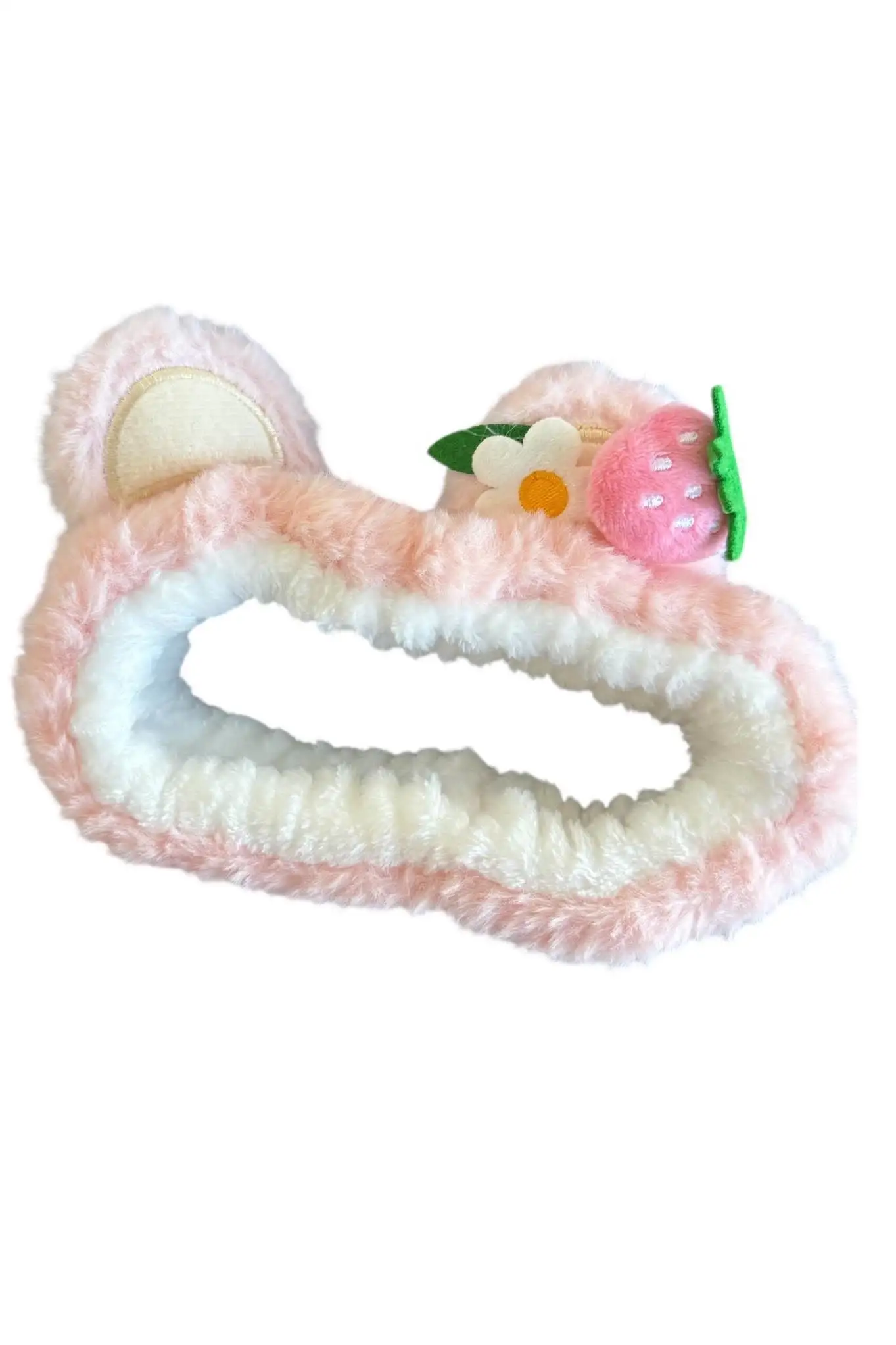 Açık Pembe Renk Çilek Figürlü Peluş Saç Bandı