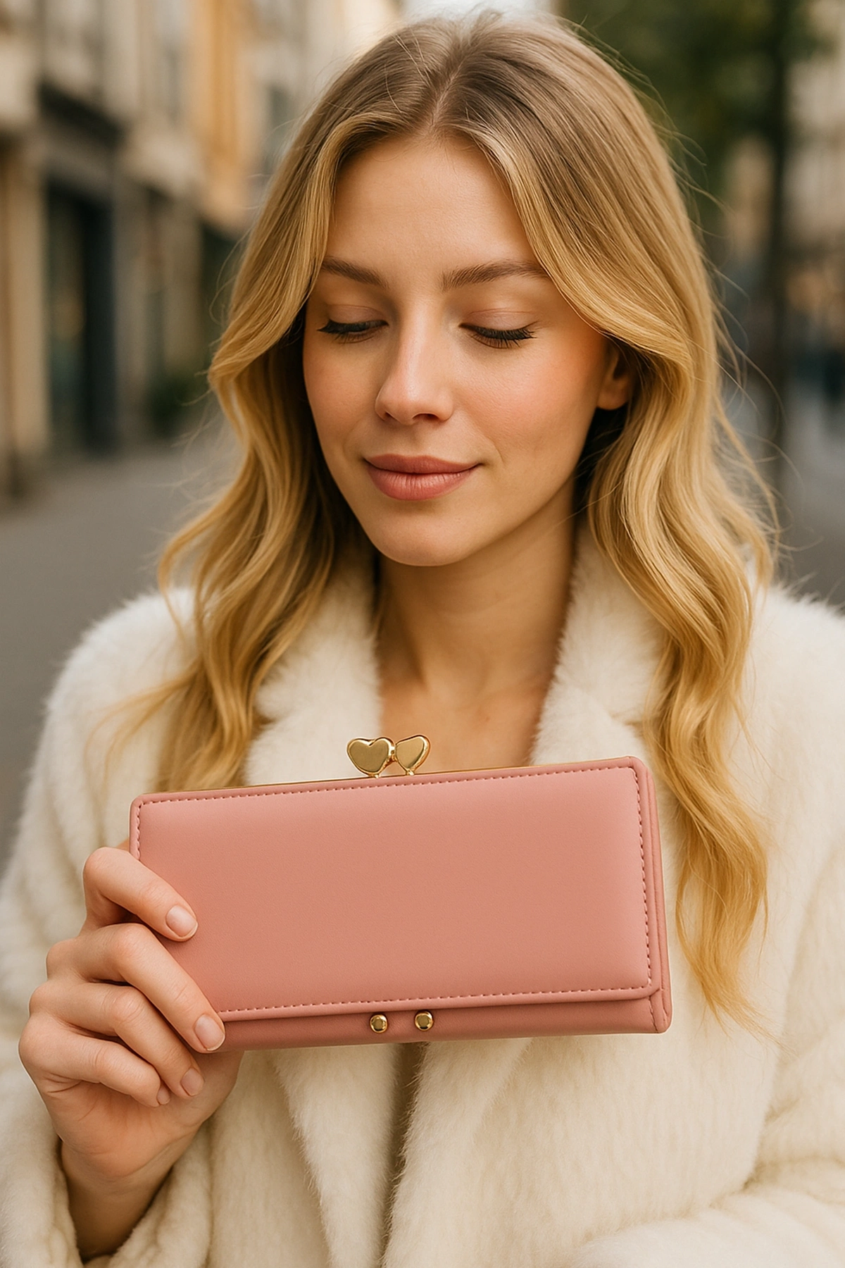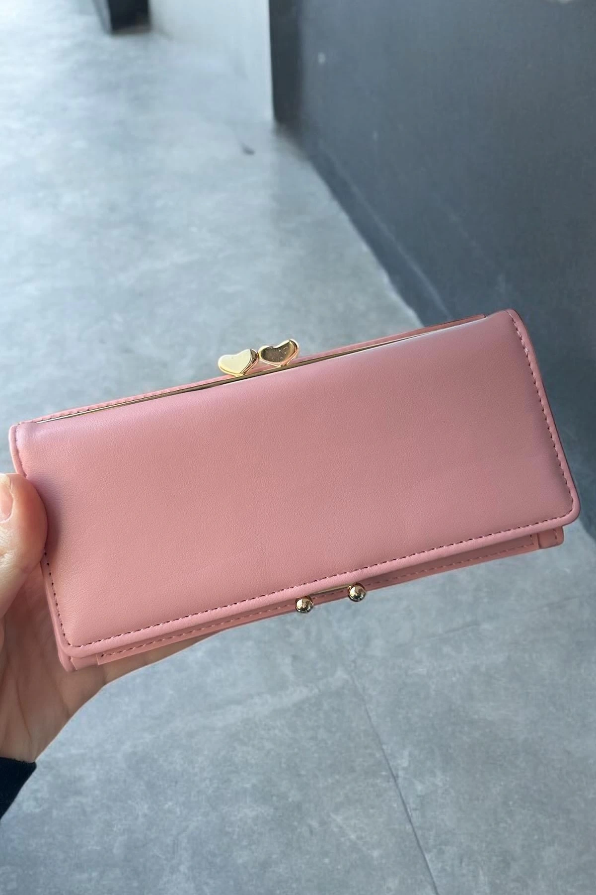 Açık Pembe Renk Kalp Detaylı Kadın Cüzdan