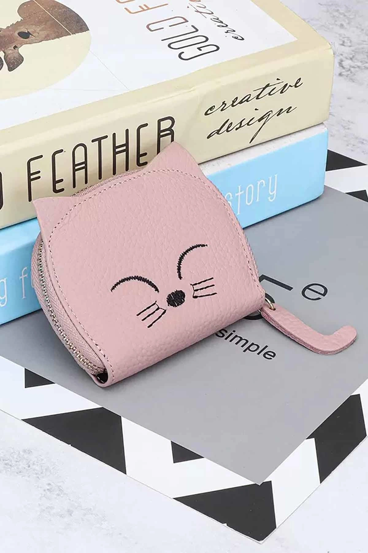 Açık Pembe Renk Kedi Figürlü Cüzdan/Kartlık