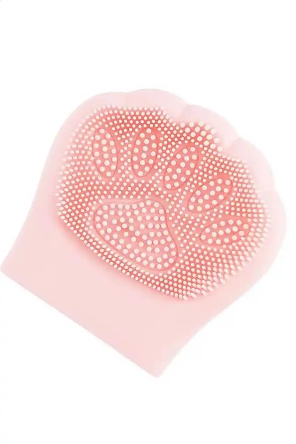 Pembe Renk Silikon Dişli Şampuan Hazneli Evcil Hayvan Banyo Fırçası