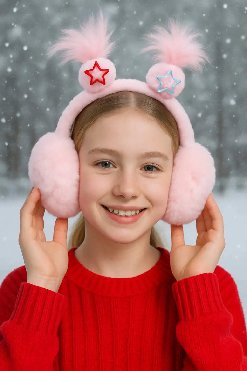 Açık Pembe Renk Saç Detaylı Peluş Kulaklık