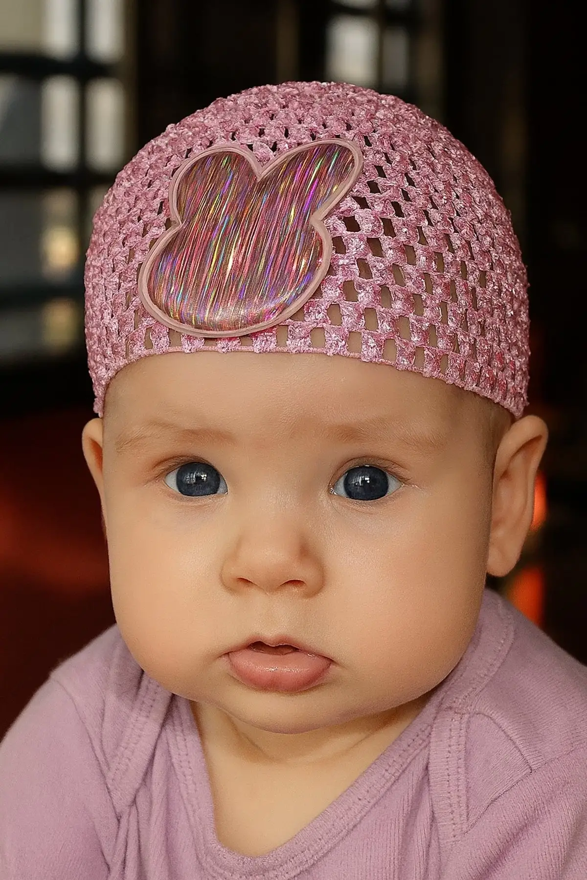Açık Pembe Renk Tavşan Figürlü Örgü Detaylı Bebek Saç Bandı/ Saç Bonesi