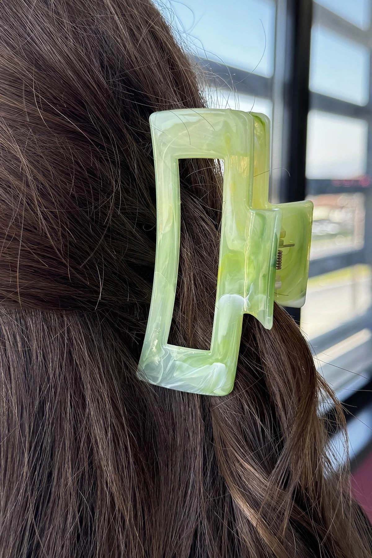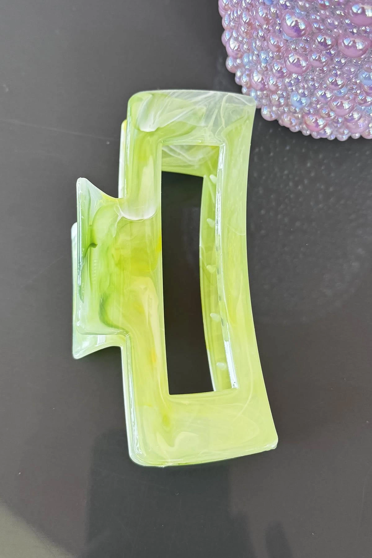 Açık Yeşil Renk Mermer Desenli Kemik Mandal Toka