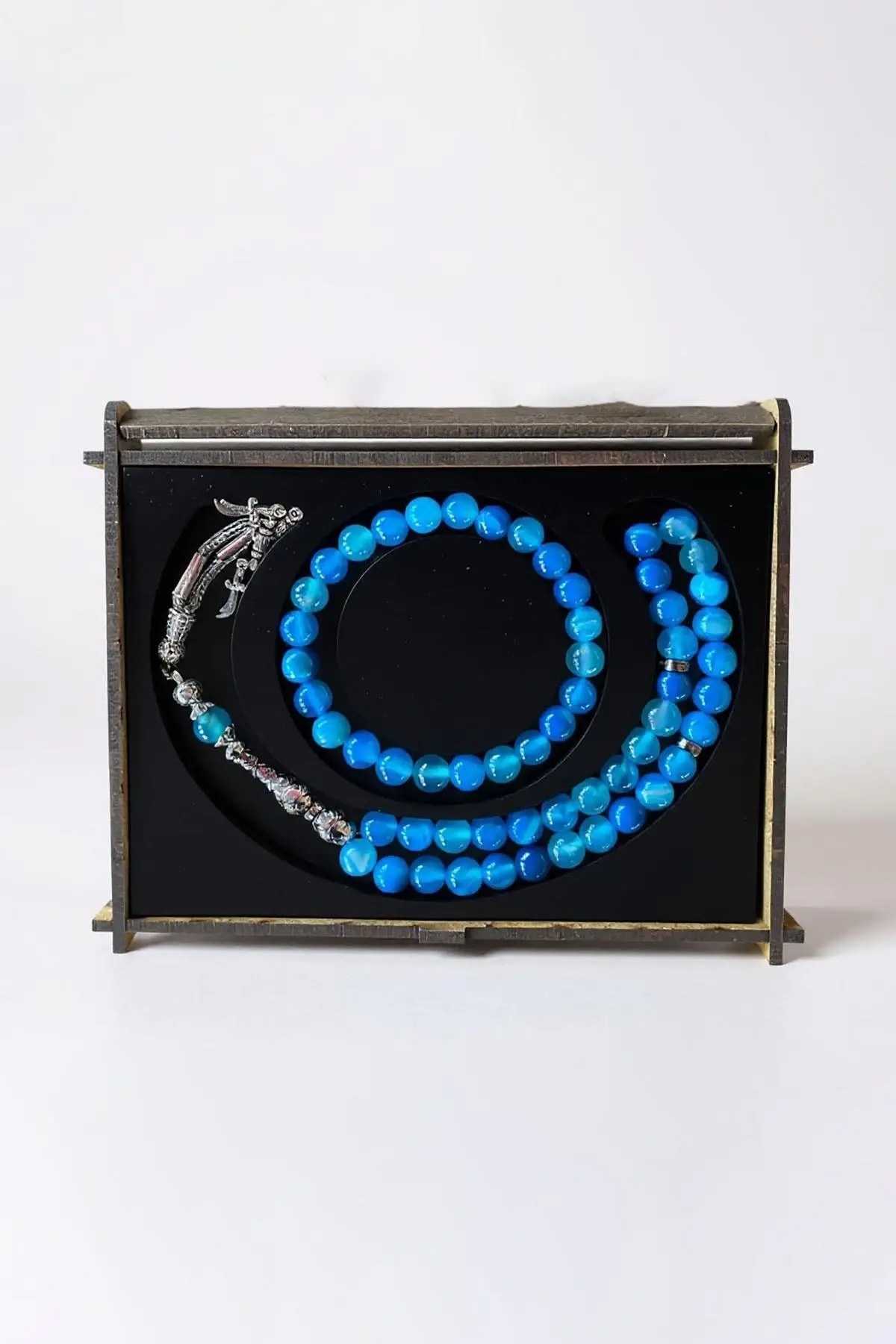 Aynı taş dizilimine sahip tesbih ve bileklik, uyumlu ve bütünlüklü bir stil sunar.