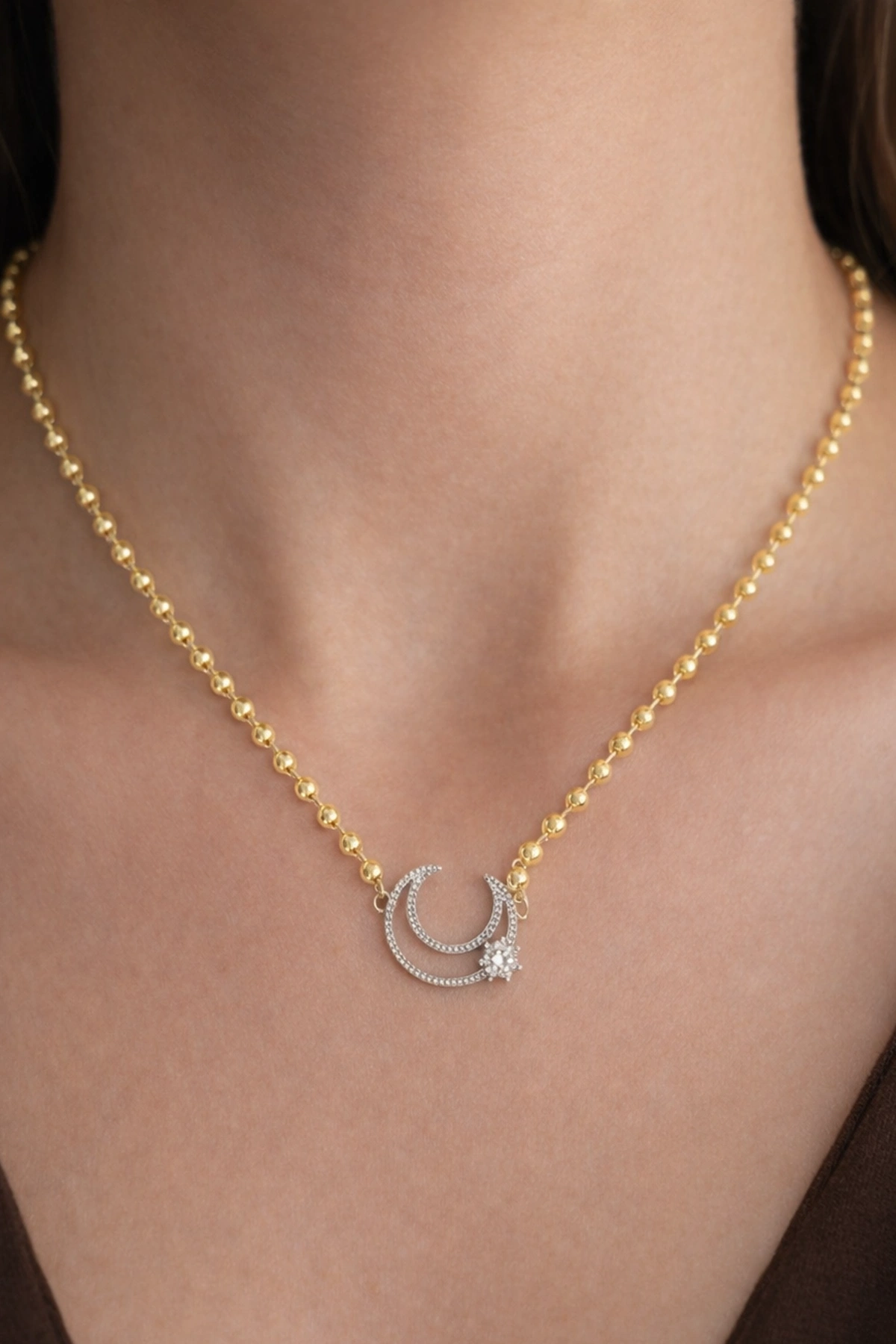 Altın Renk 14k Altın Kaplama Ay Figürlü Kolye