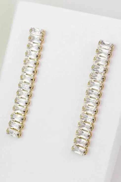 Altın Renk Taş Detaylı 14K Altın Kaplama Küpe (Çift)