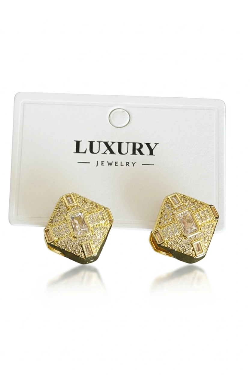 Altın Renk 14K Altın Kaplama Taşlı Küpe (Çift)