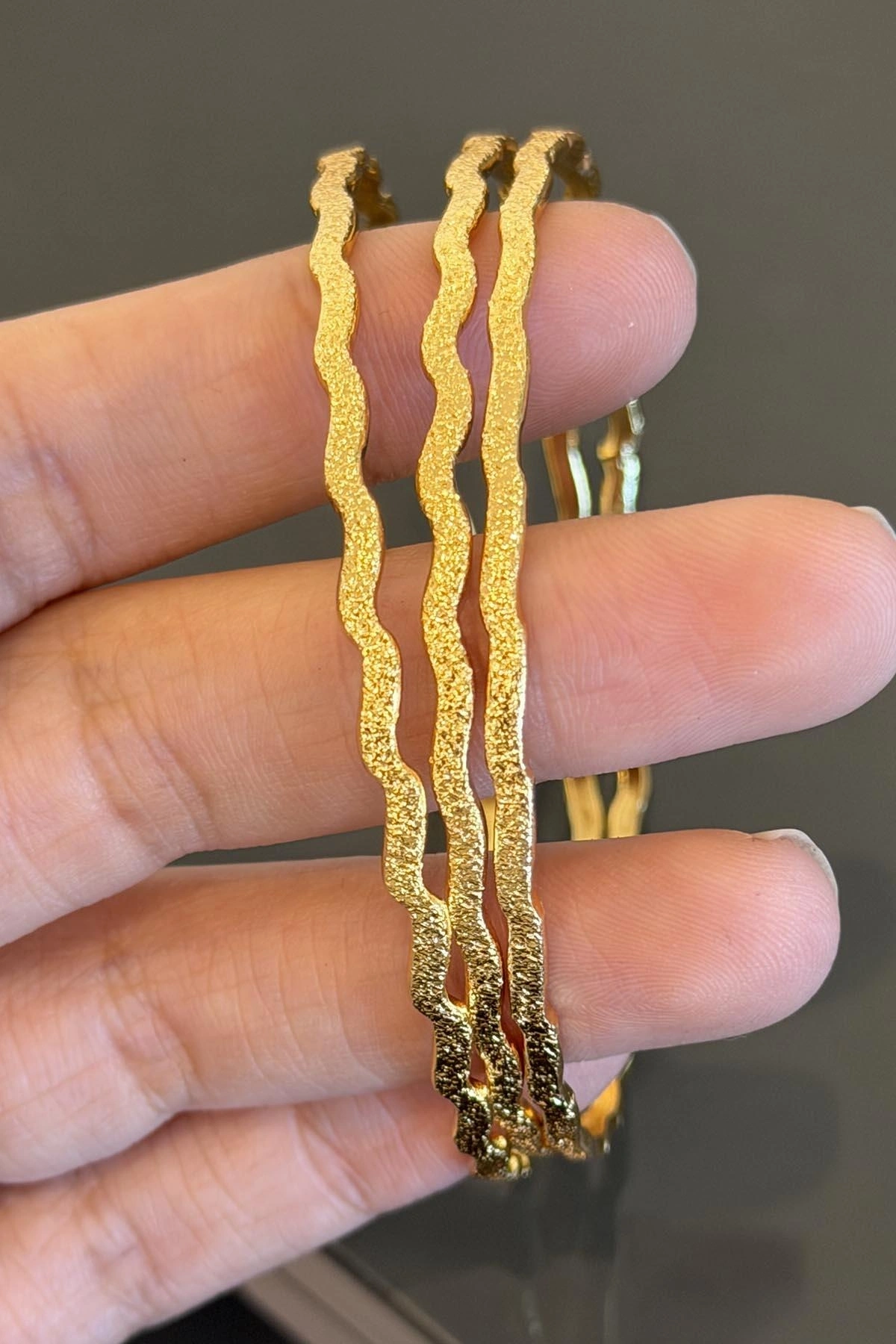 Altın Renk 3'lü Kumlu Zikzak Ajda Bilezik