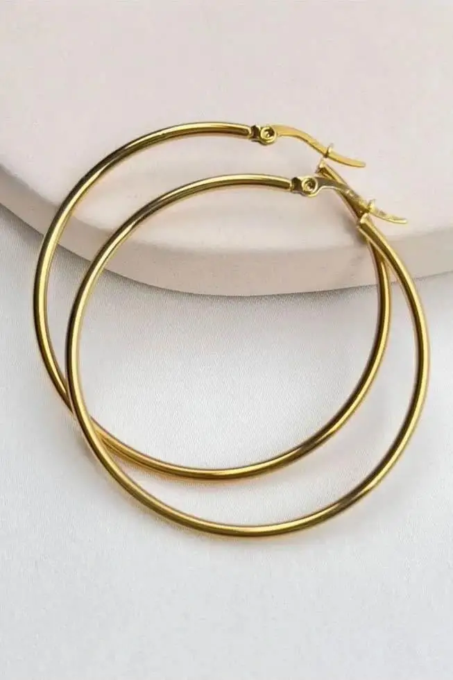 Altın Renk 40MM Çelik Halka Küpe (Çift)