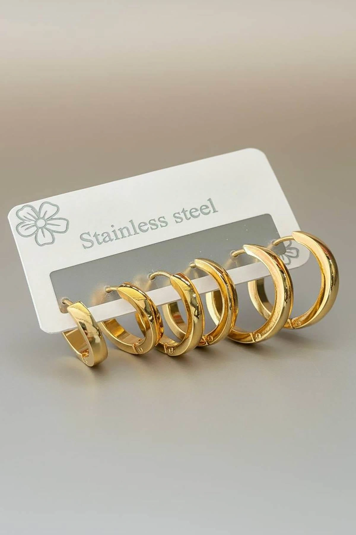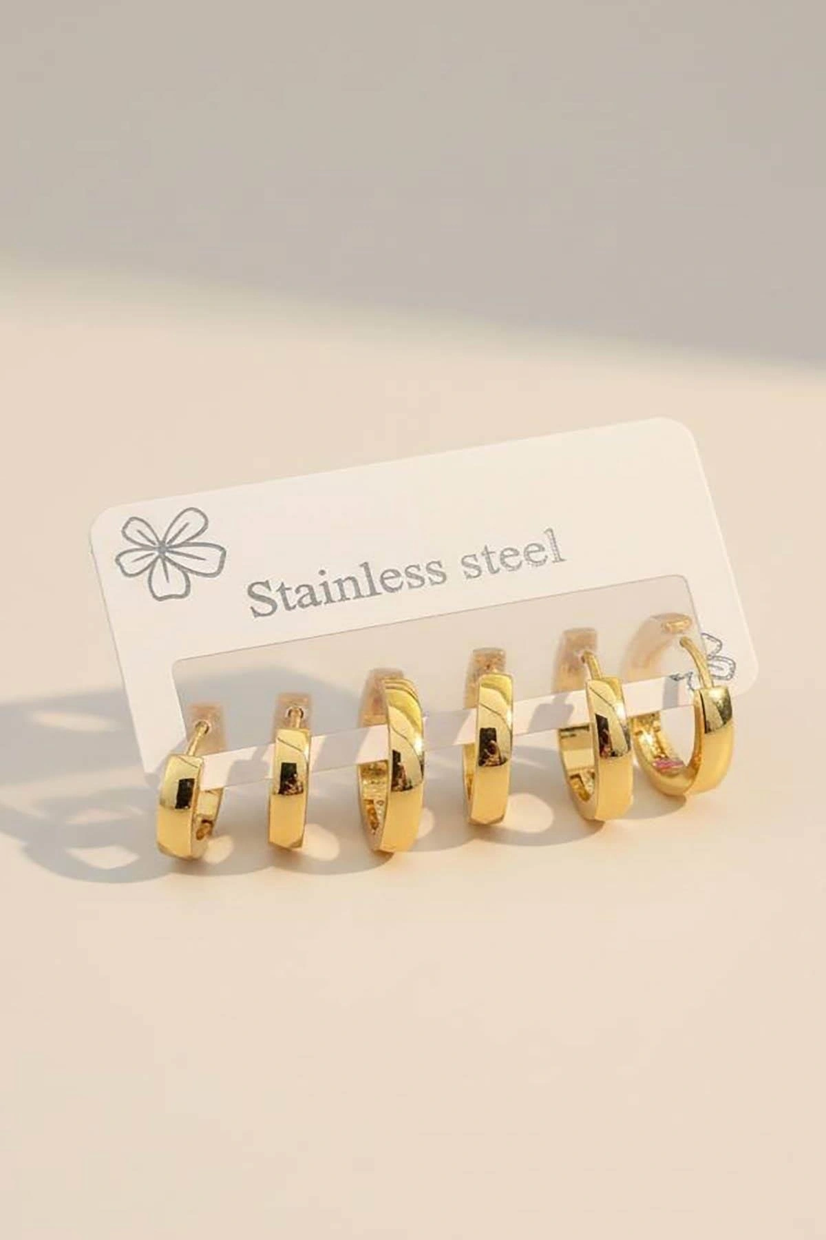 Altın Renk 6'lı Halka Çelik Küpe Set