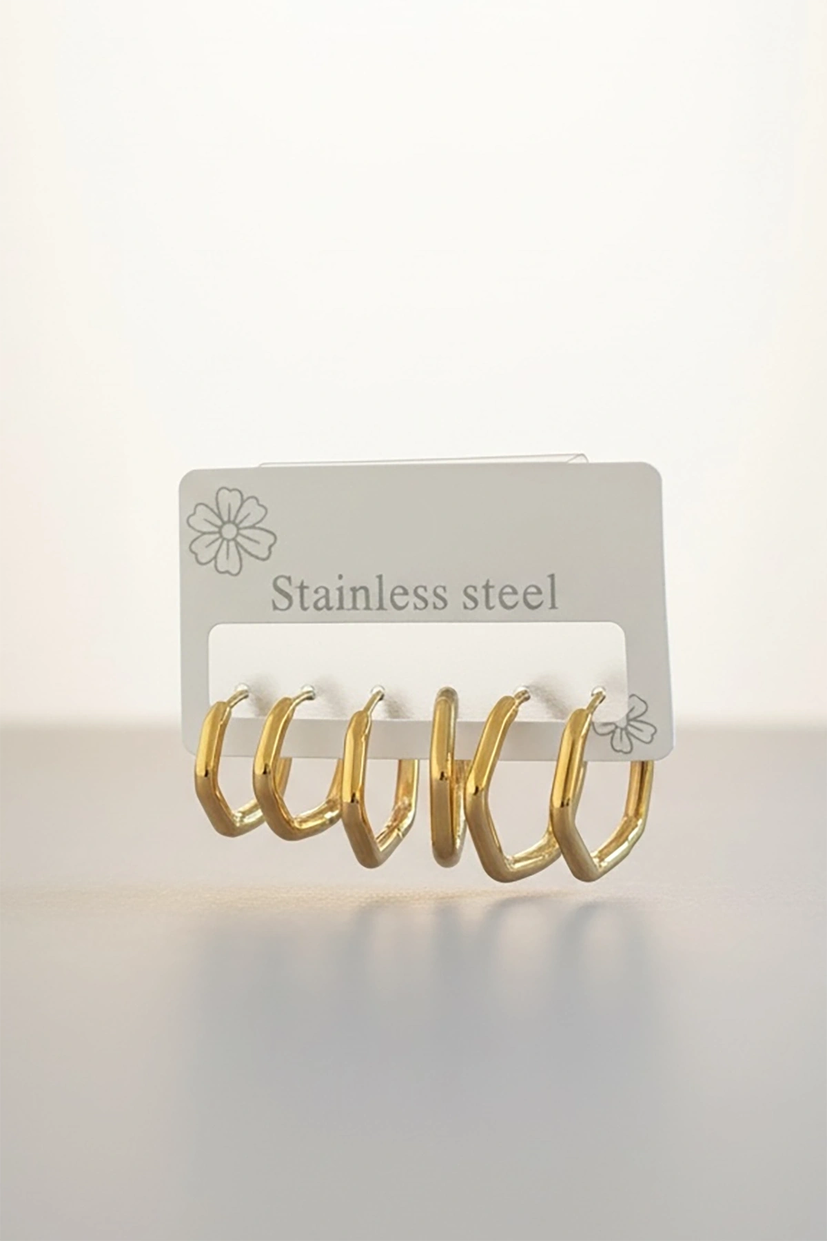 Altın Renk 6'lı Halka Detaylı Çelik Küpe Set