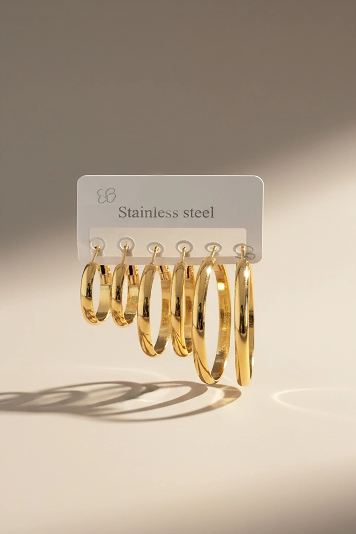 Altın Renk 6'lı Halka Detaylı Çelik Küpe Set