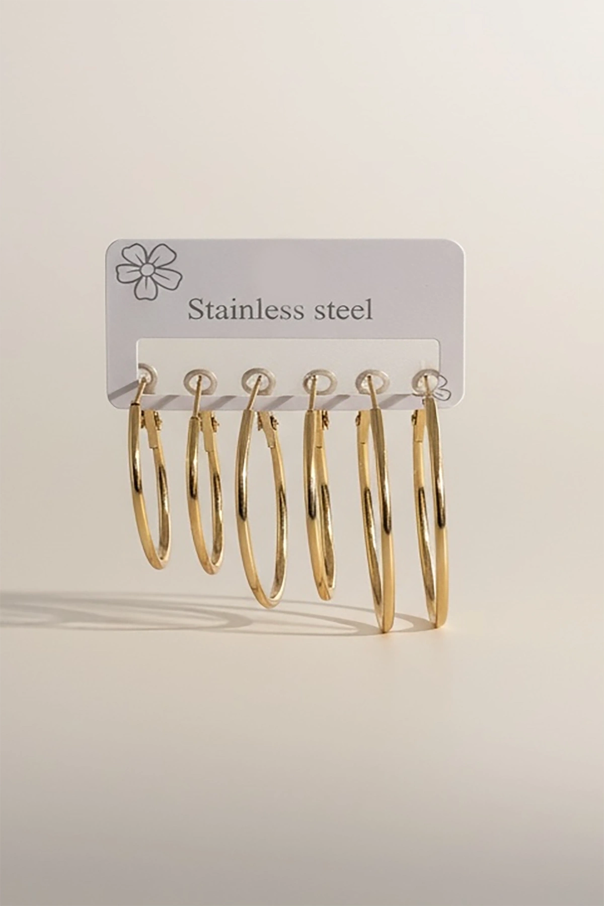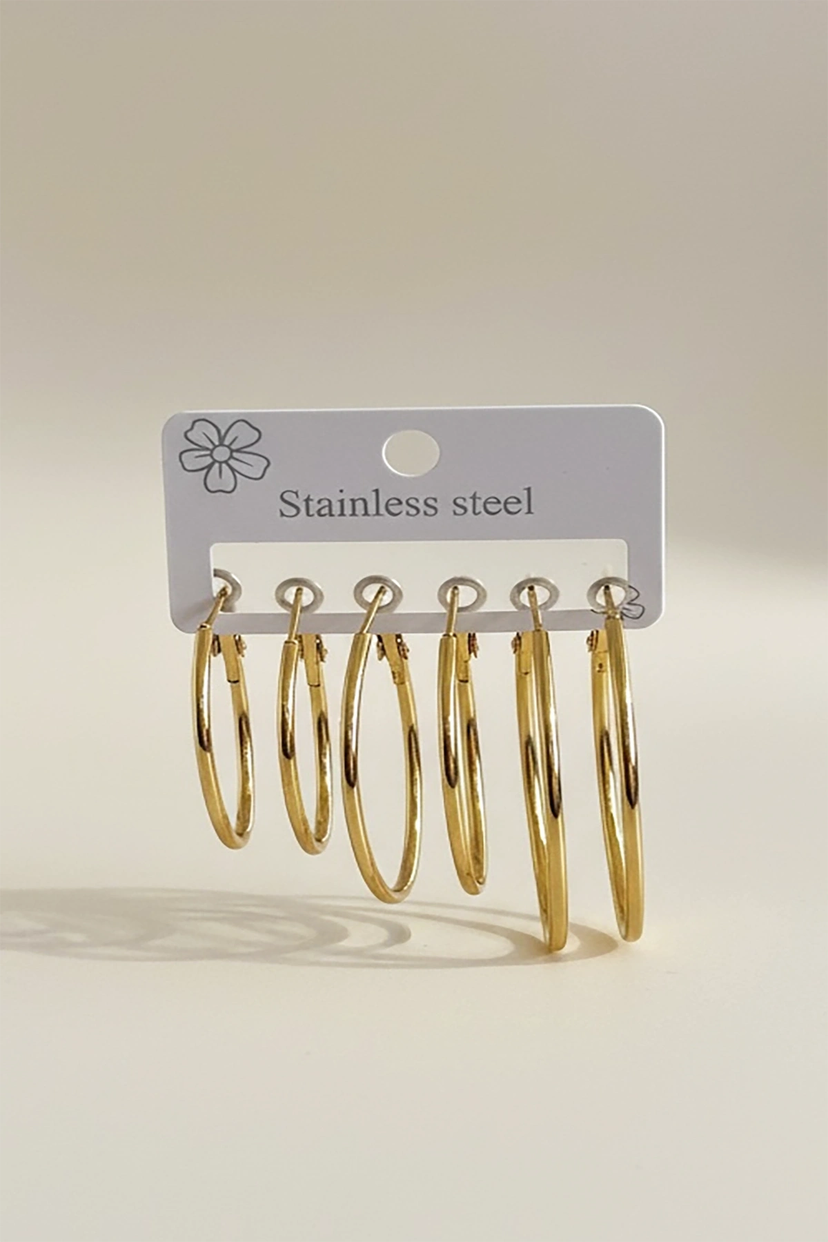 Altın Renk 6'lı Halka Detaylı Çelik Küpe Set