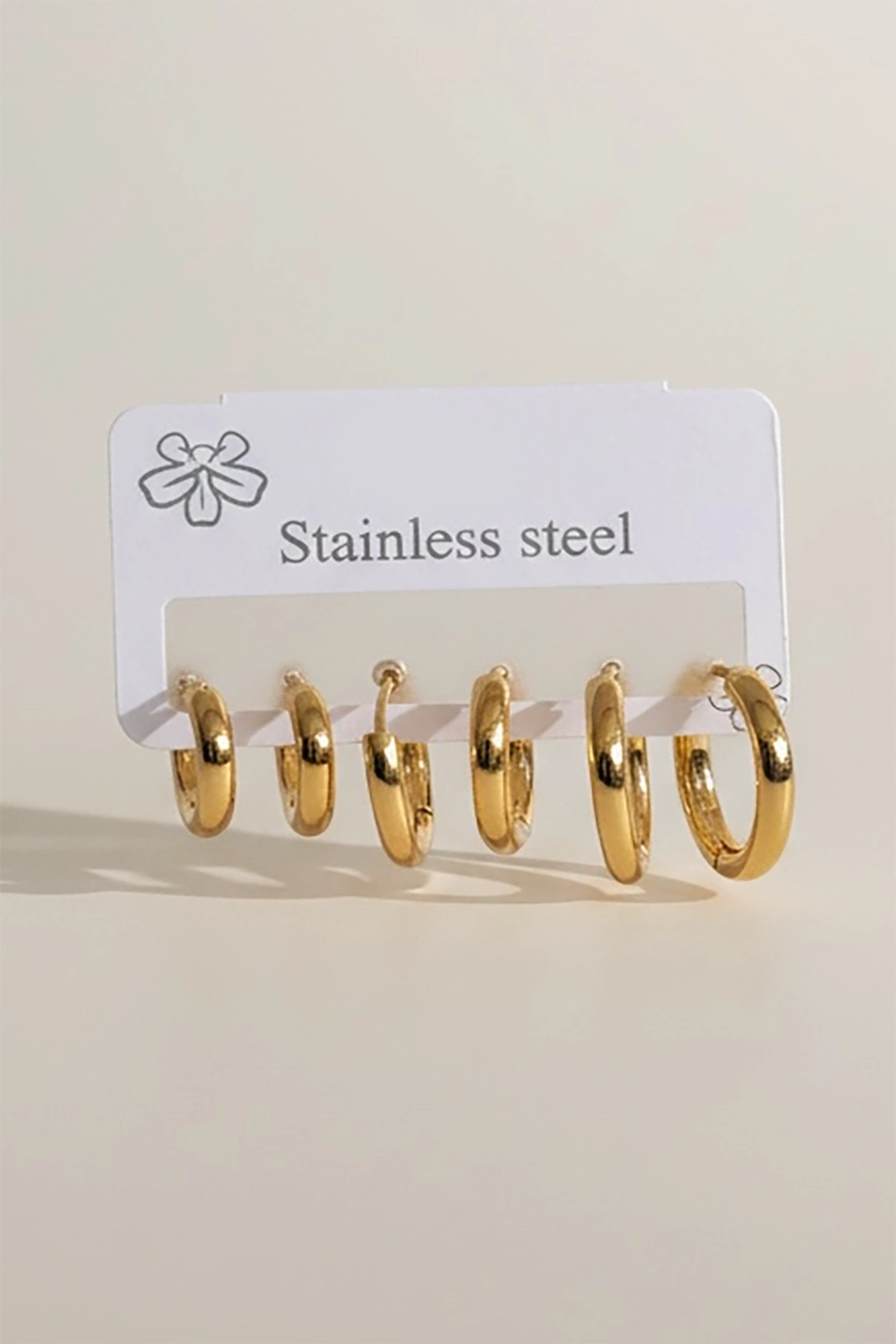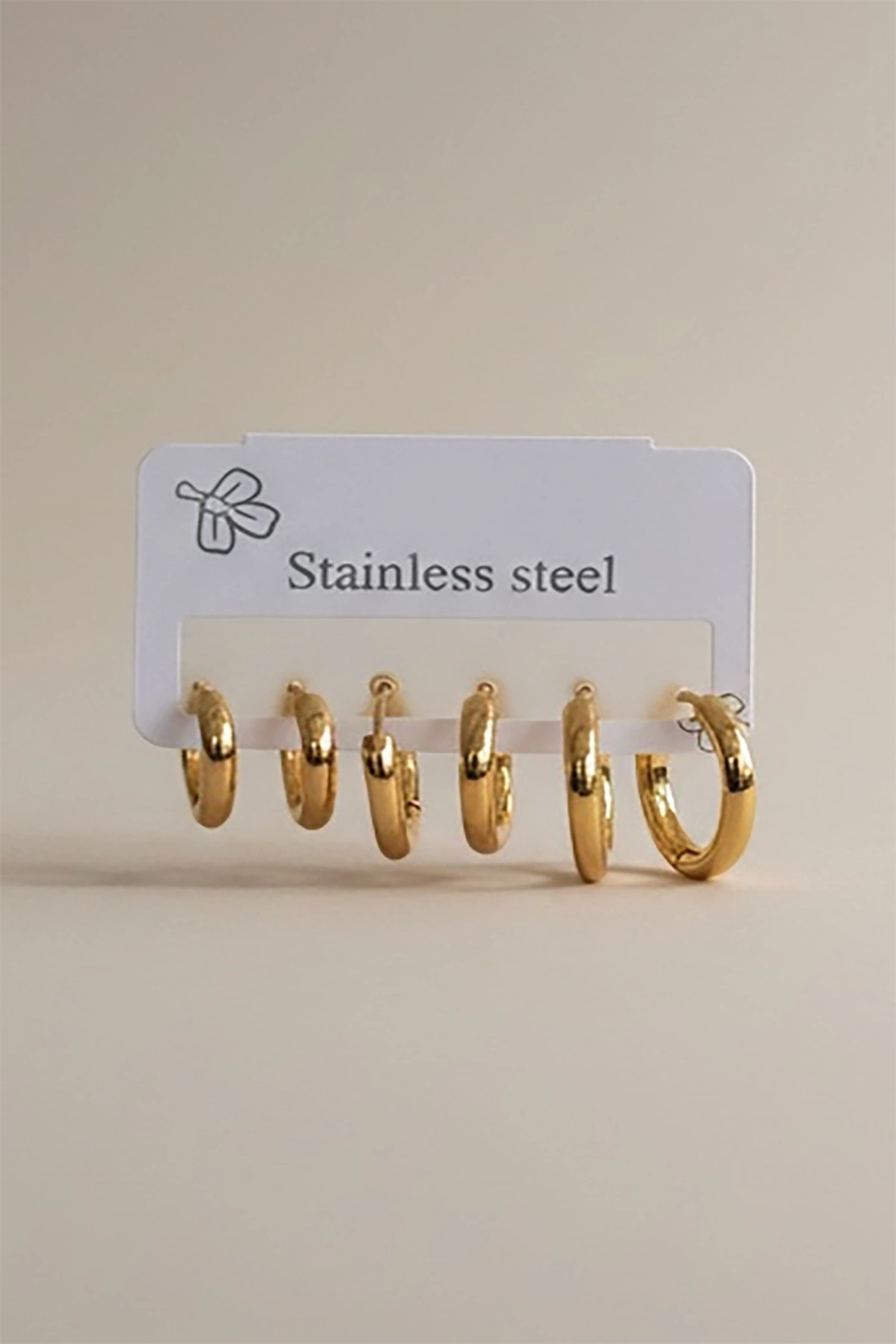 Altın Renk 6'lı Halka Detaylı Çelik Küpe Set