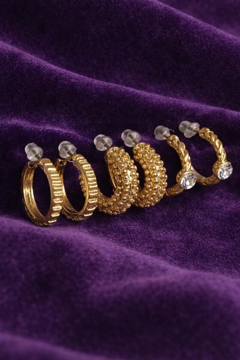 Altın Renk 6'lı Halka Küpe Set