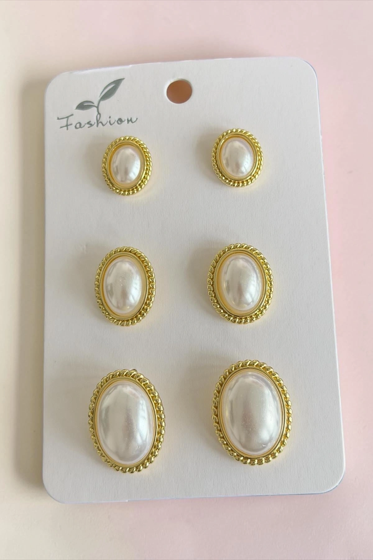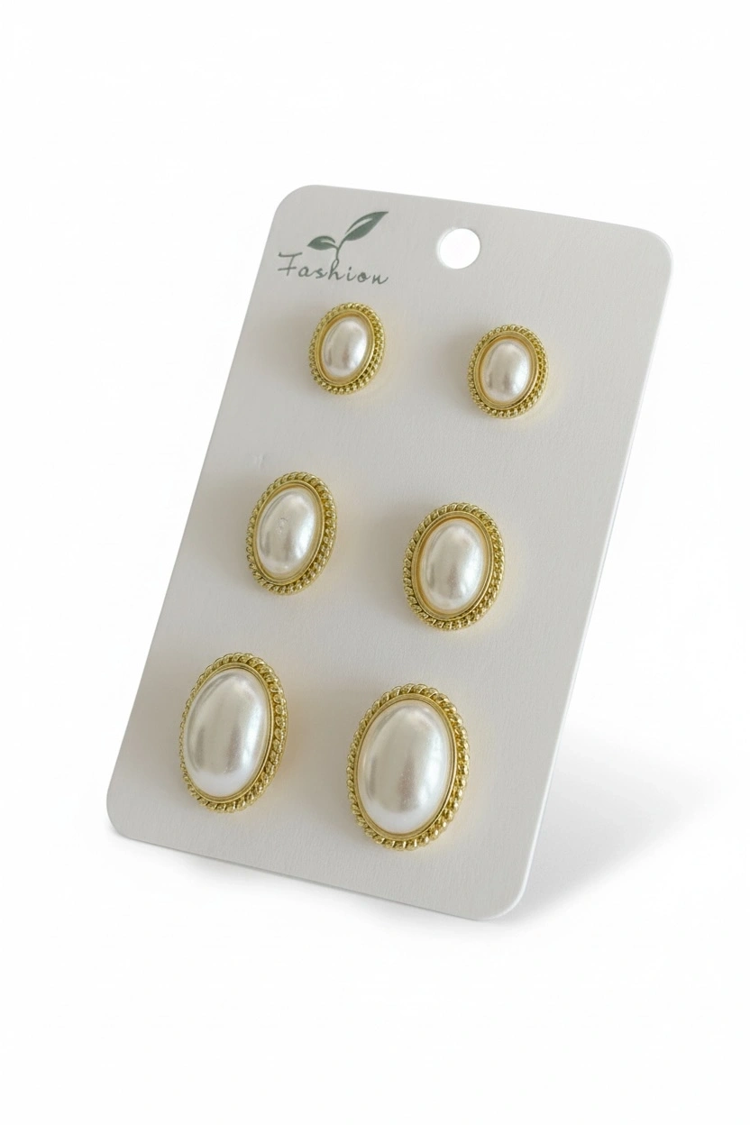 Altın Renk 6'lı İnci Küpe Set