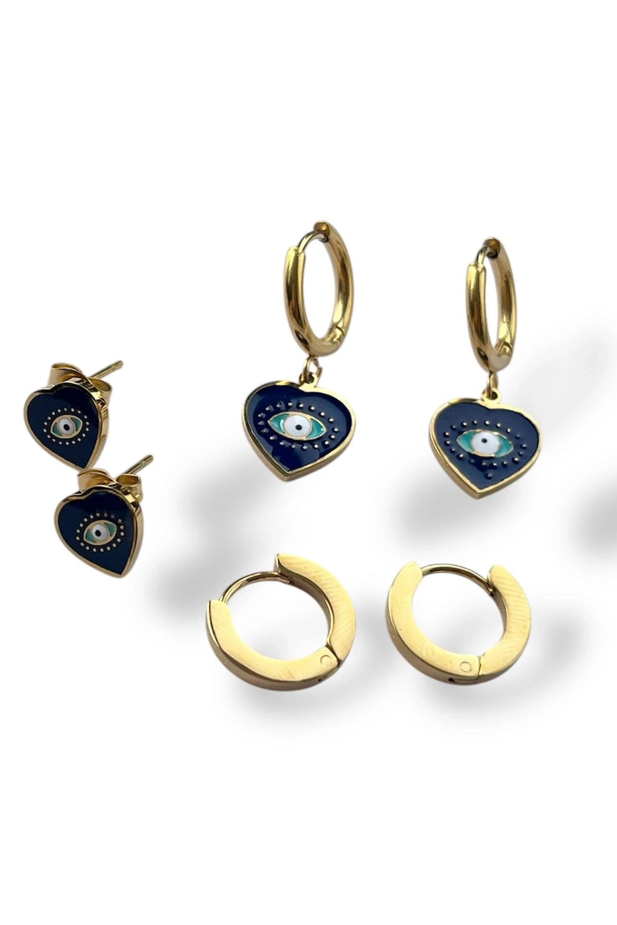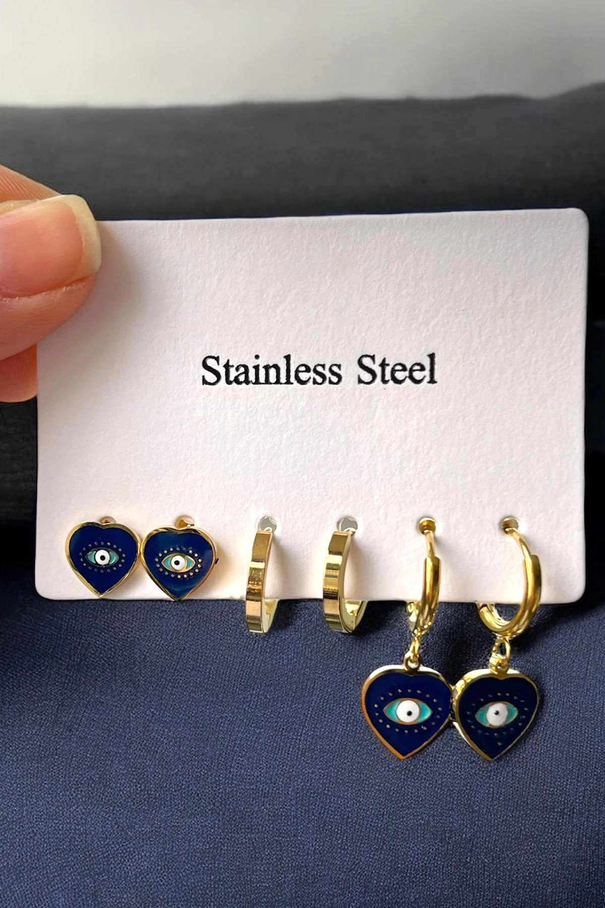 Altın Renk 6'lı Karışık Figürlü Çelik Küpe Set