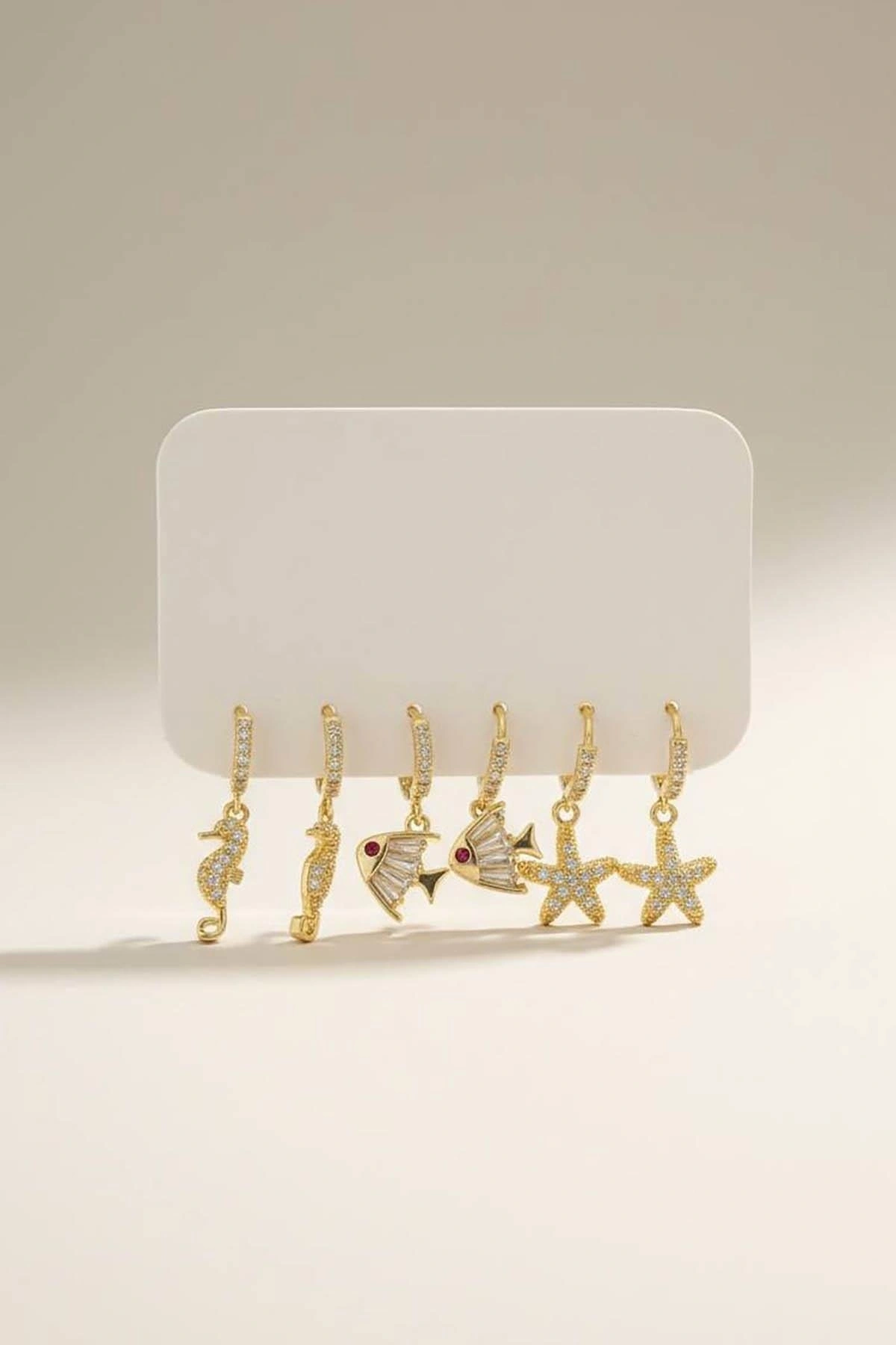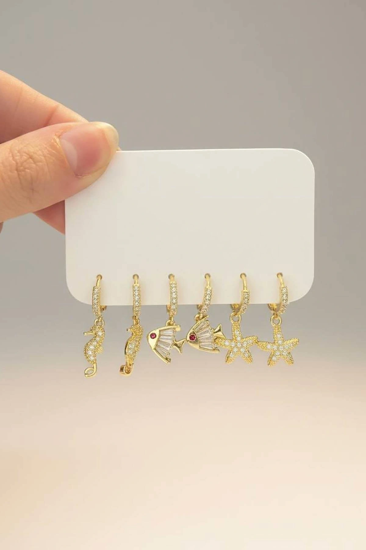 Altın Renk 6'lı Karışık Figürlü Set Küpe