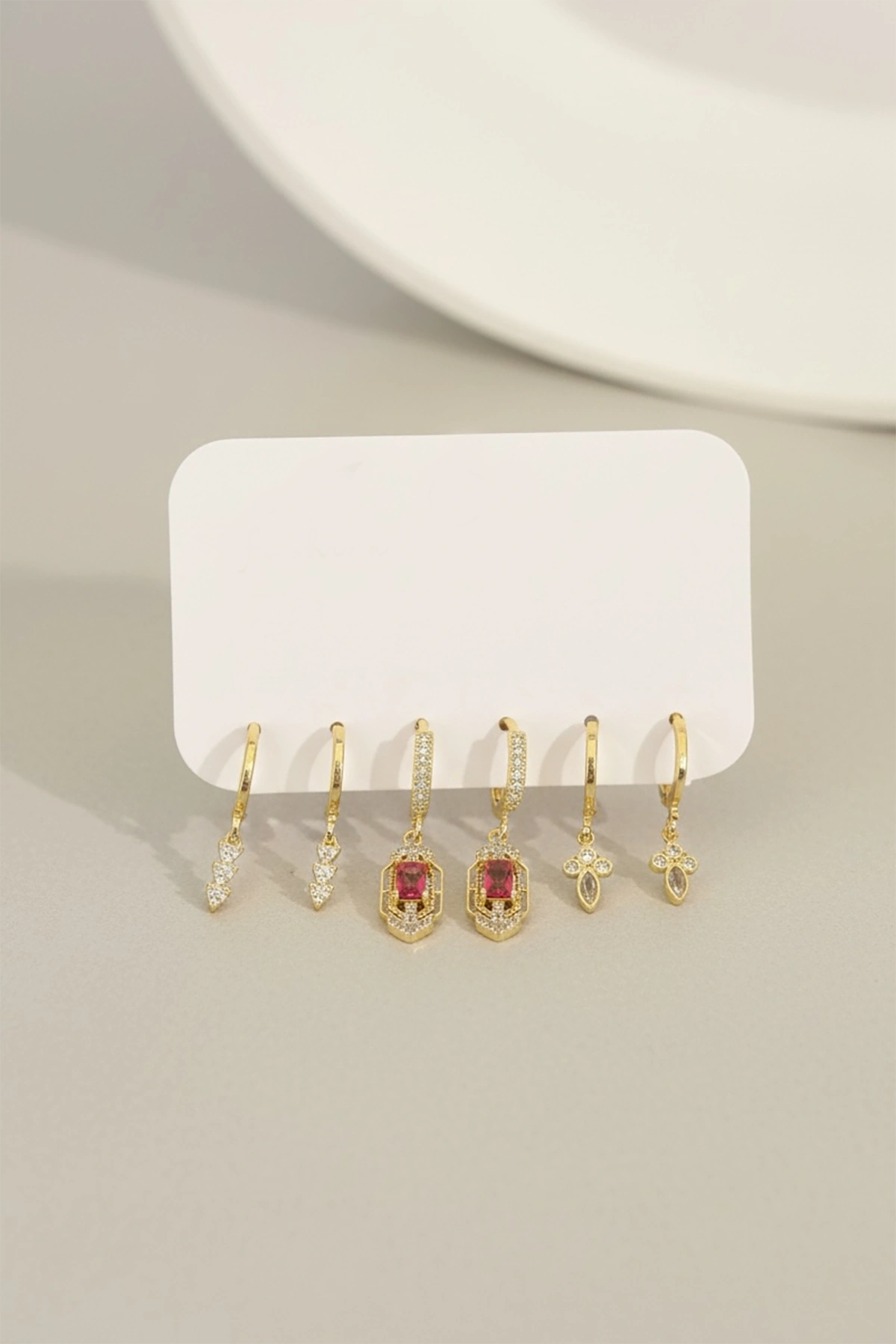 Altın Renk 6'lı Taş Detaylı Set Küpe