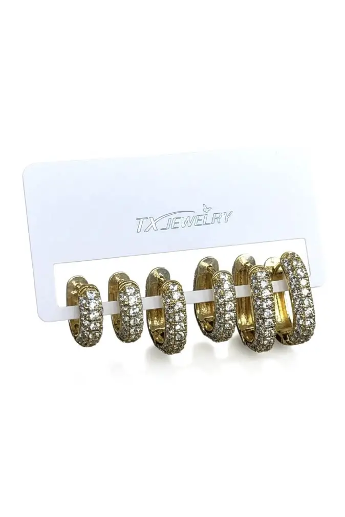 6'lı Altın Renk Taş Detaylı Küpe Set