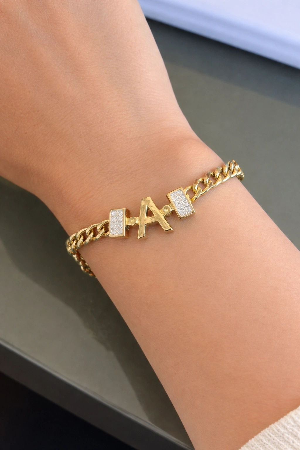 Altın Renk A Harf Çelik Bileklik