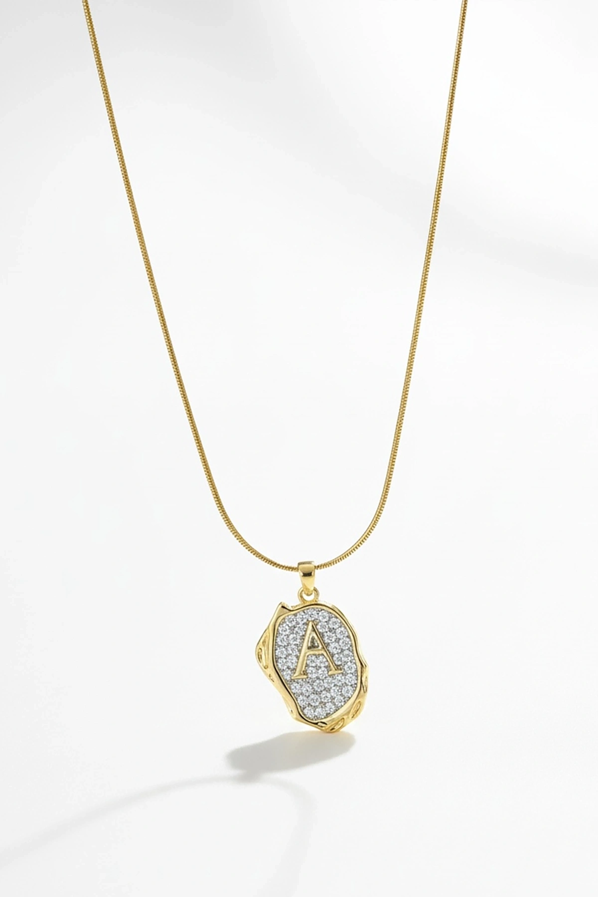 Altın Renk A Harf Taş Detaylı Çelik Kolye