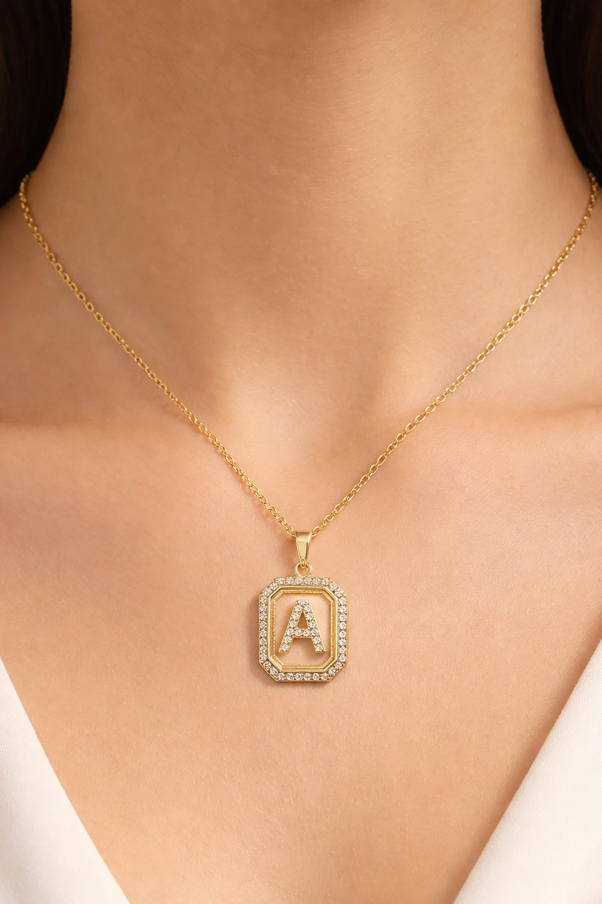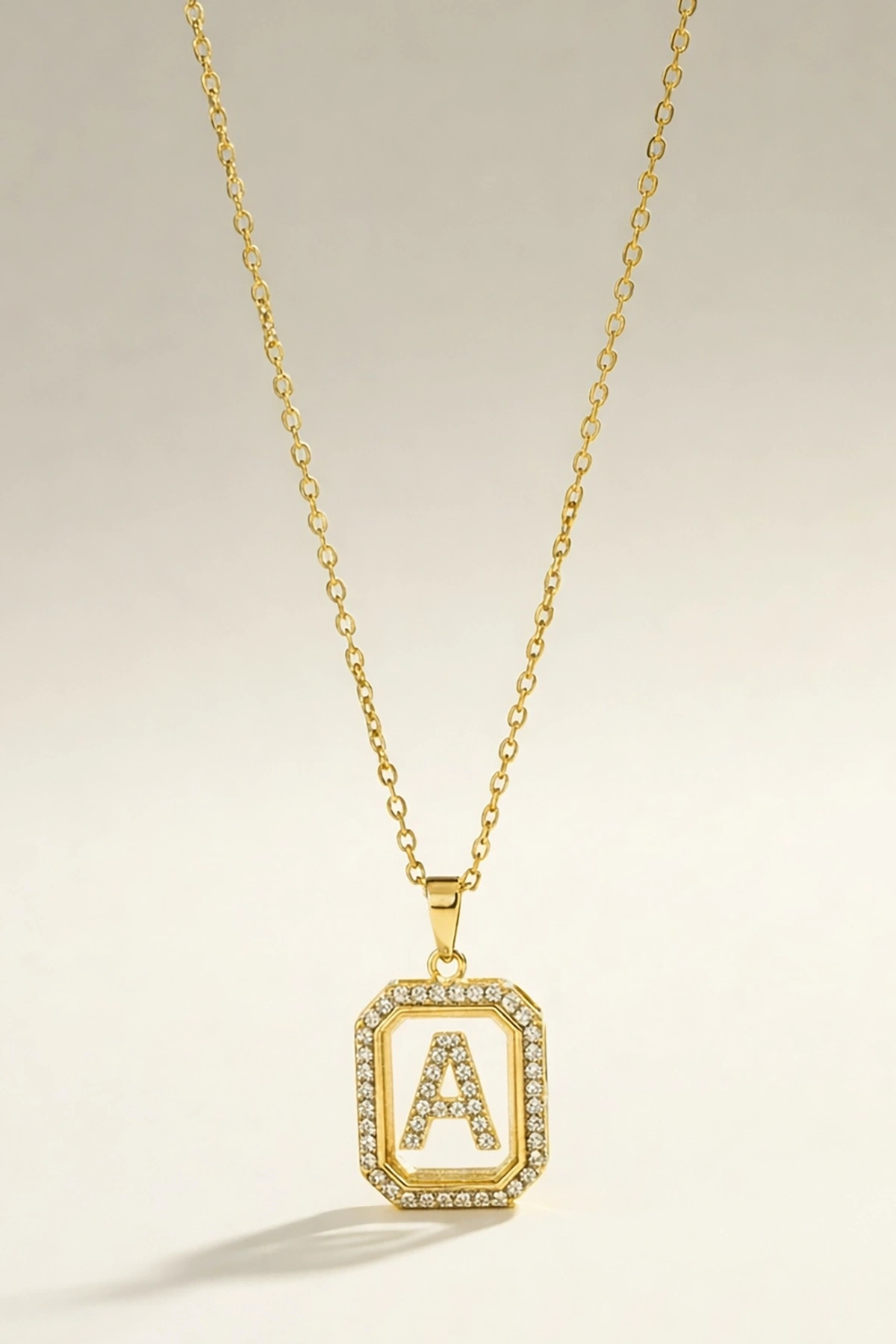 Altın Renk A Harf Taş Detaylı Çelik Kolye