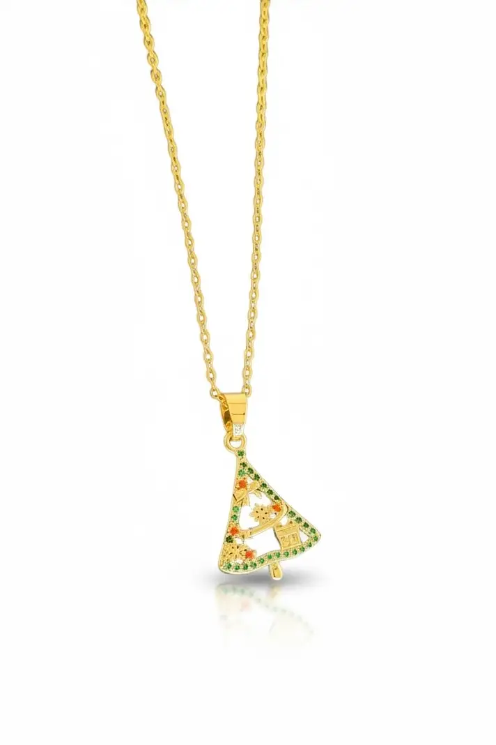 Altın Renk Ağaç Figürlü Çelik Yılbaşı Kolyesi