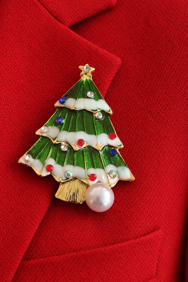 Altın Renk Ağaç Figürlü Yılbaşı Temalı Broş