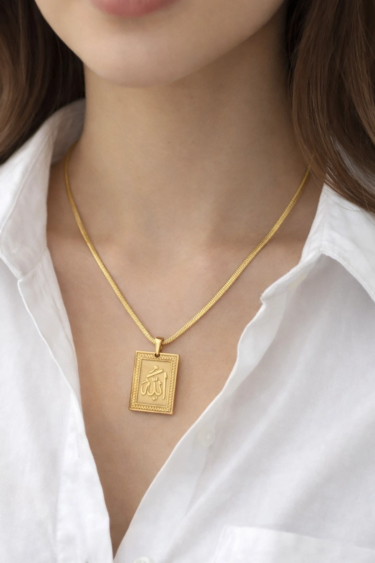 Altın Renk Allah Yazılı Çelik Kolye