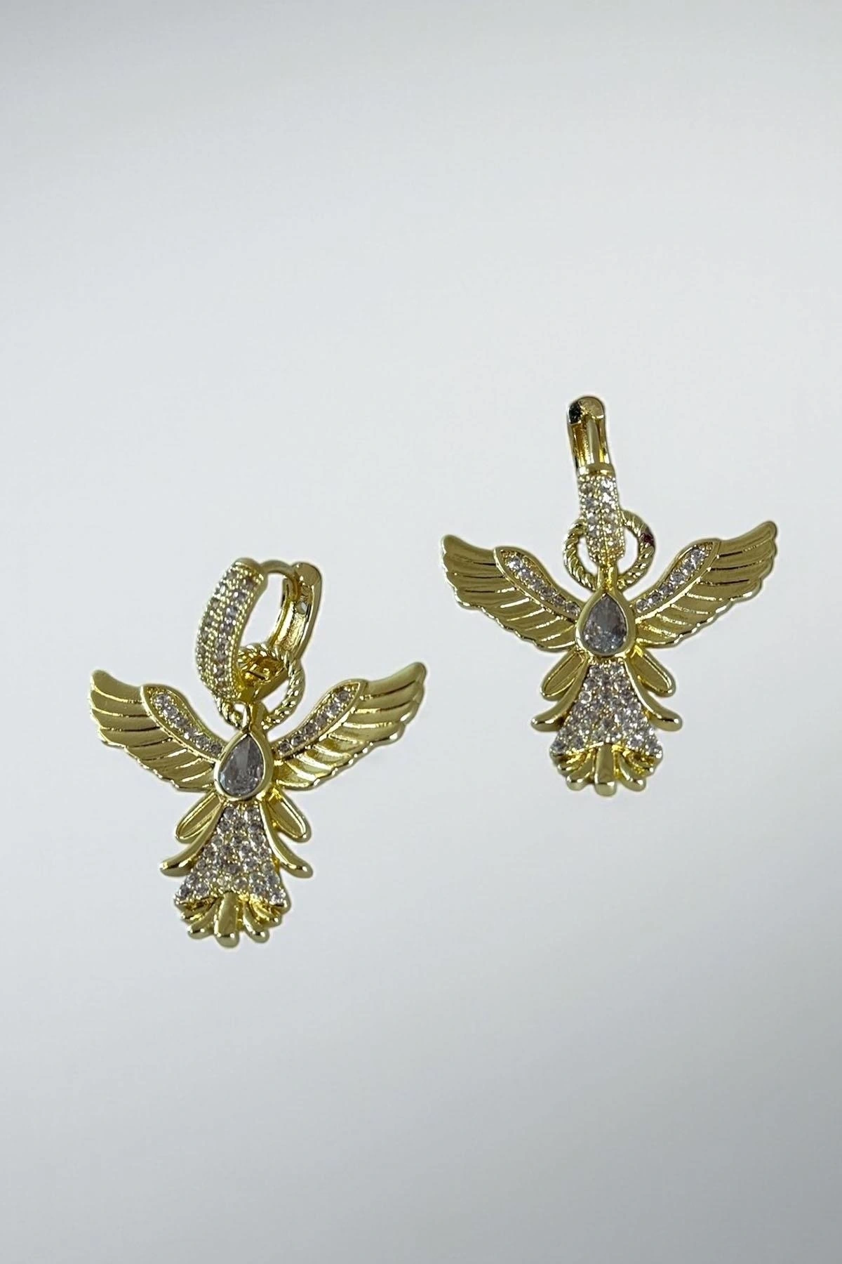 Altın Renk Anka Kuş Figürlü Taş Detaylı Küpe (Çift)