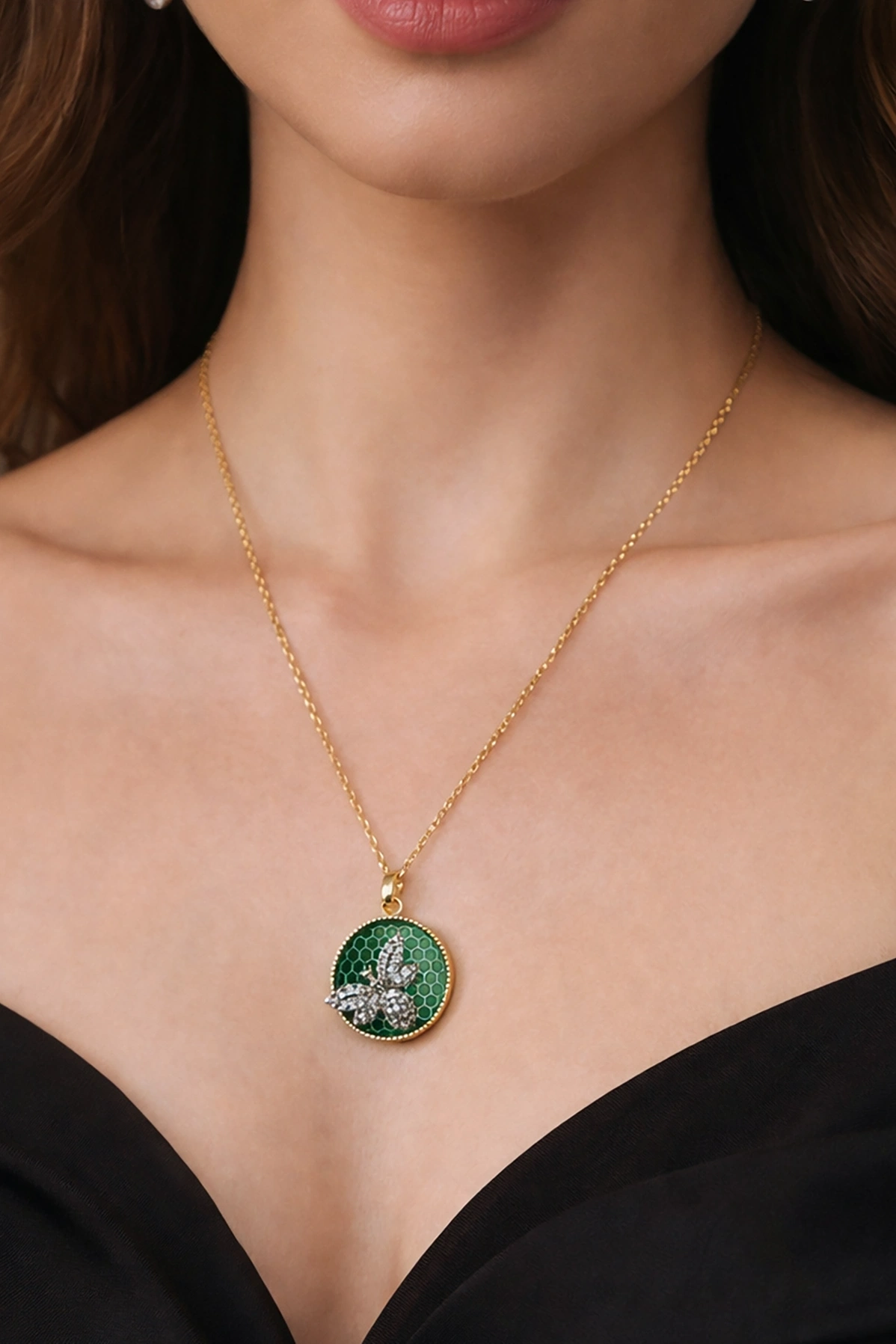 Altın Renk Arı Figürlü Çelik Kolye