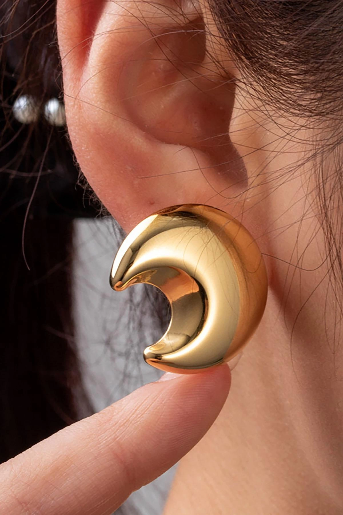 Altın Renk Ay Figürlü Çelik Küpe (Çift)