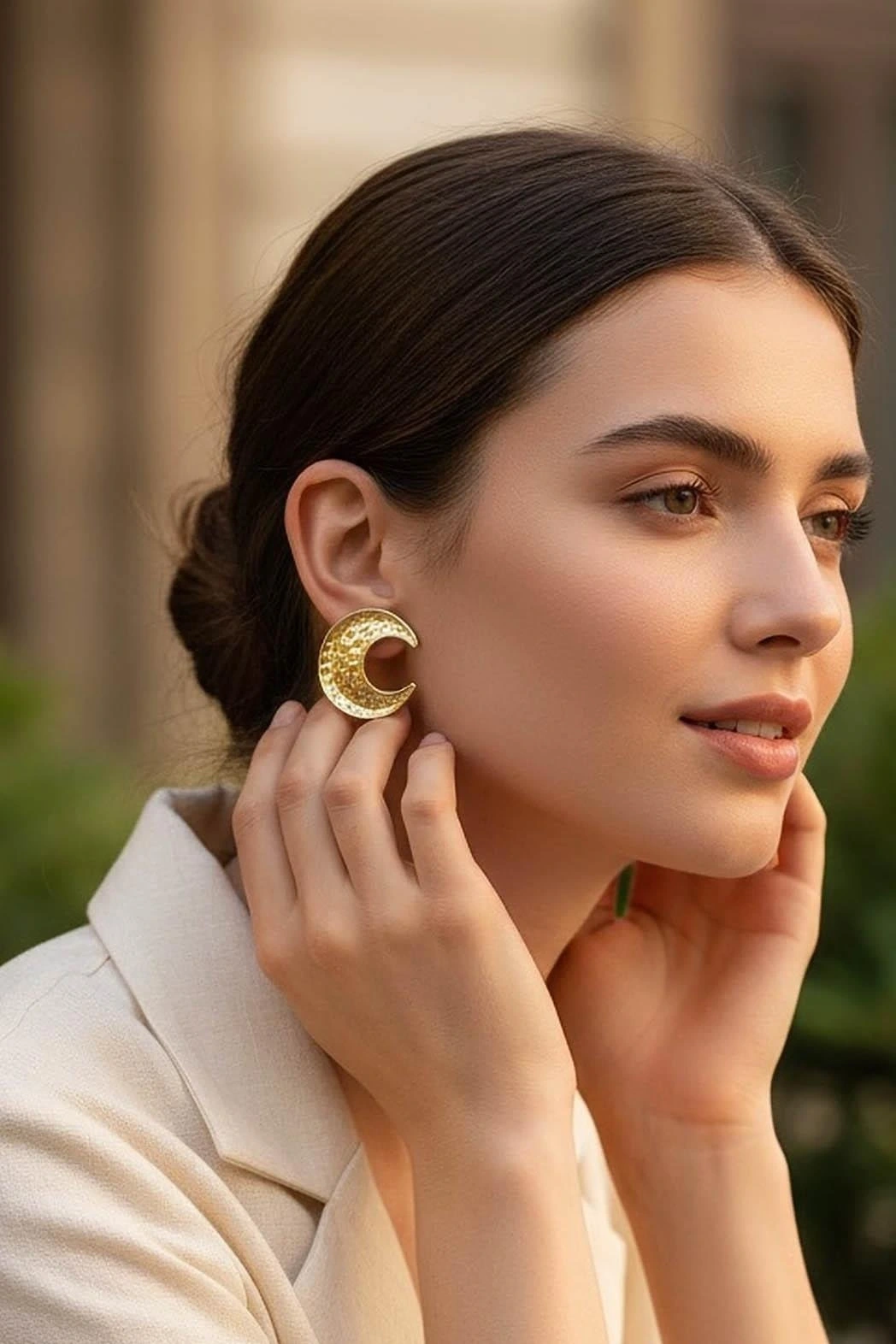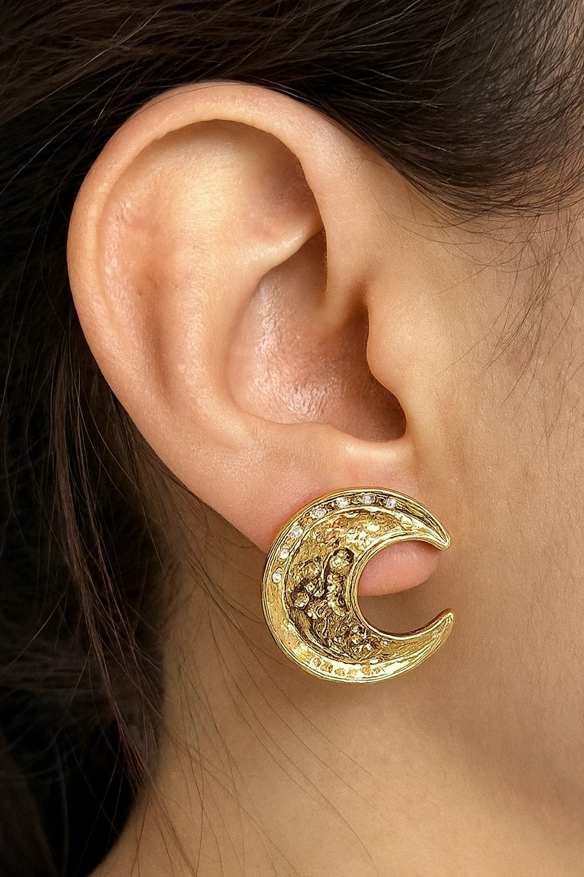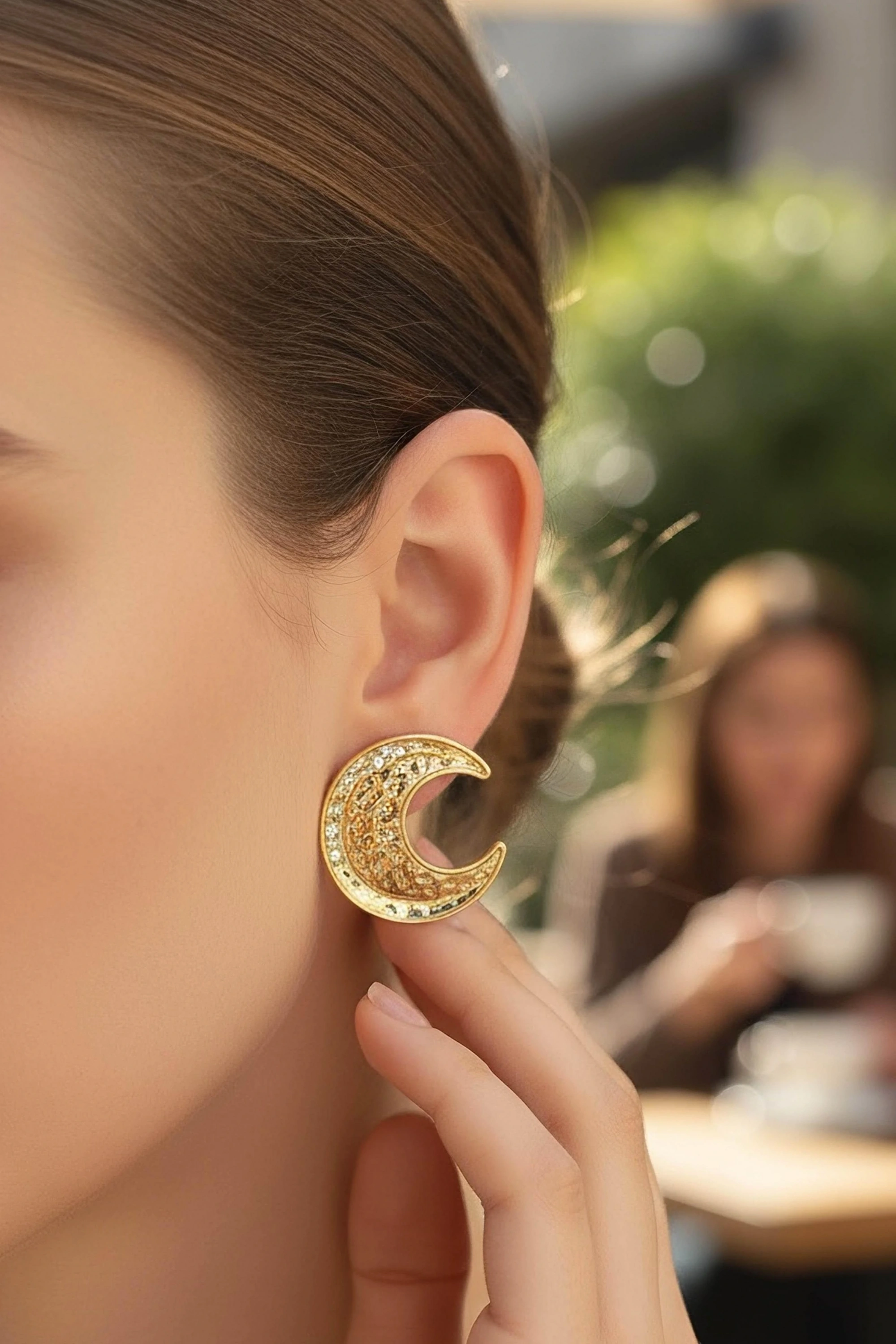 Altın Renk Ay Figürlü Çelik Küpe (Çift)