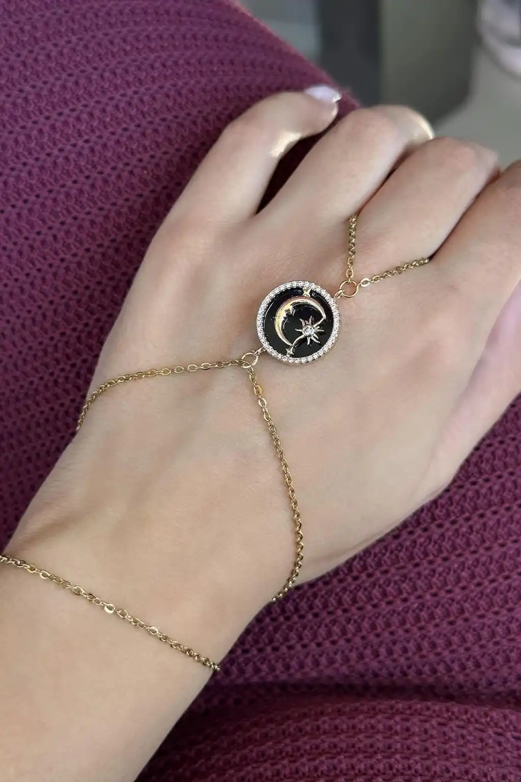 Altın Renk Ay Ve Yıldız Figürlü Taş Detaylı Çelik Şahmeran