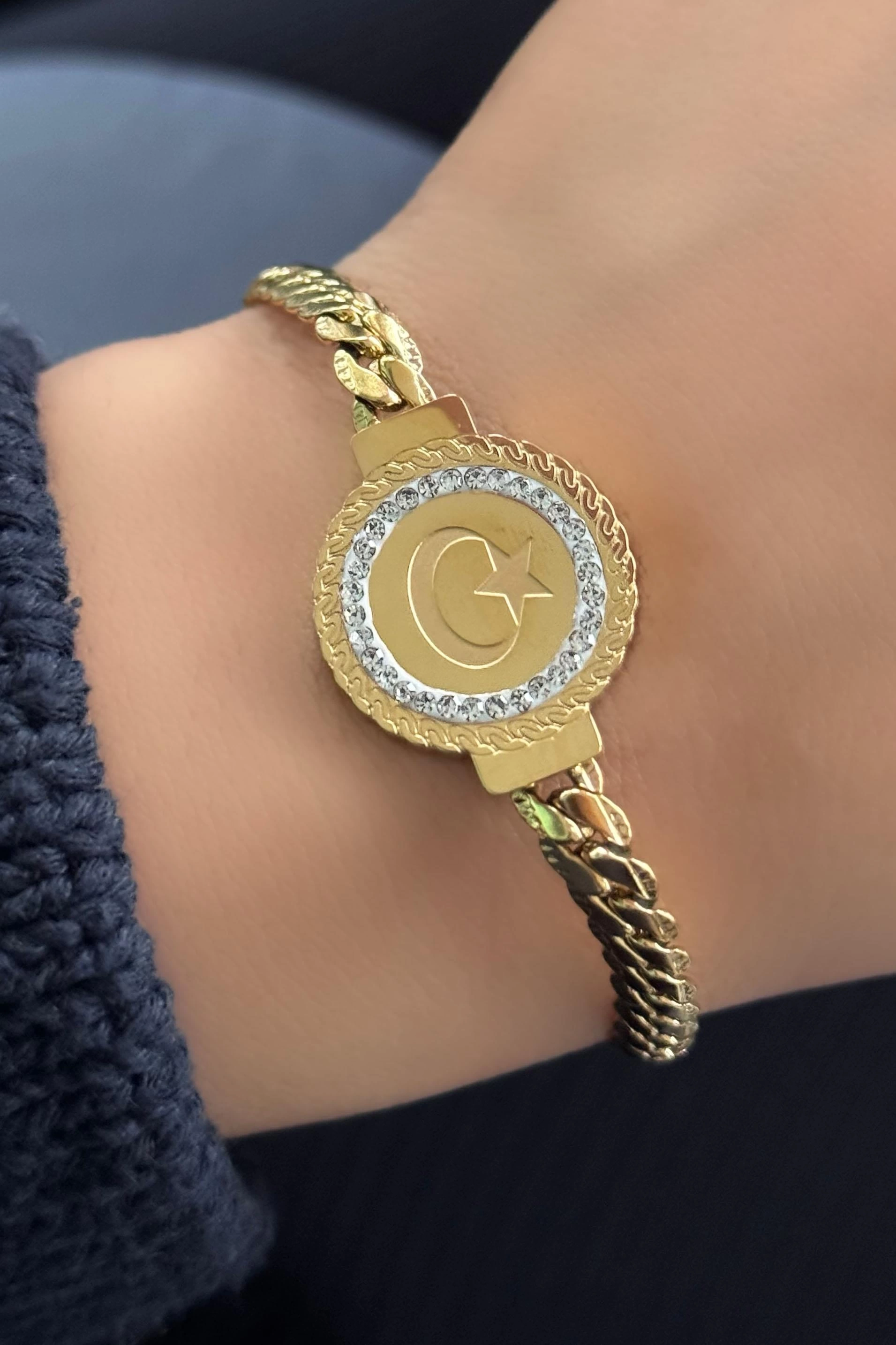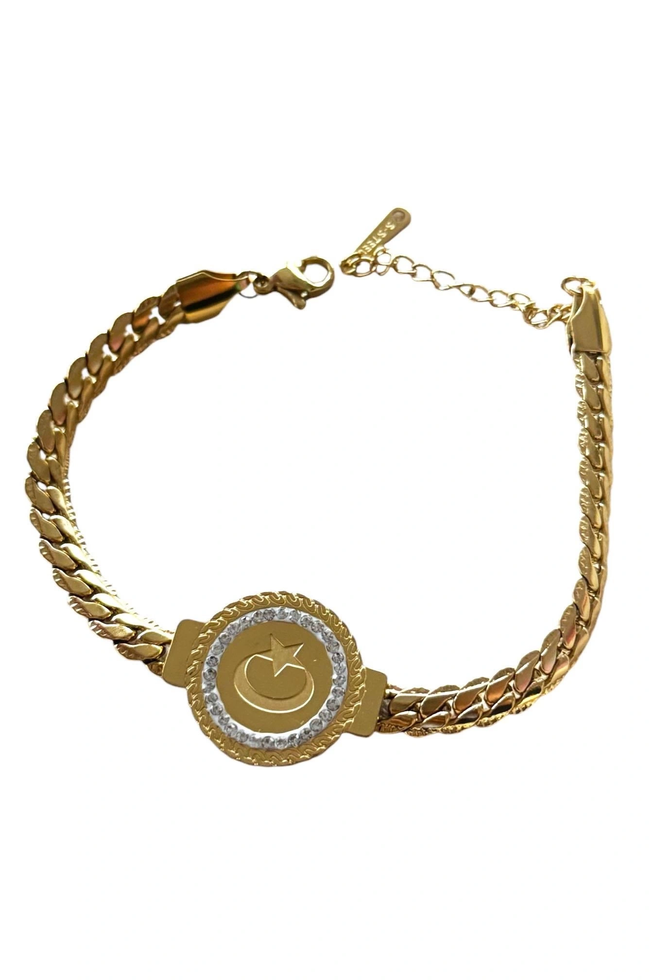 Altın Renk Ay Yıldız Figürlü Çelik Bileklik